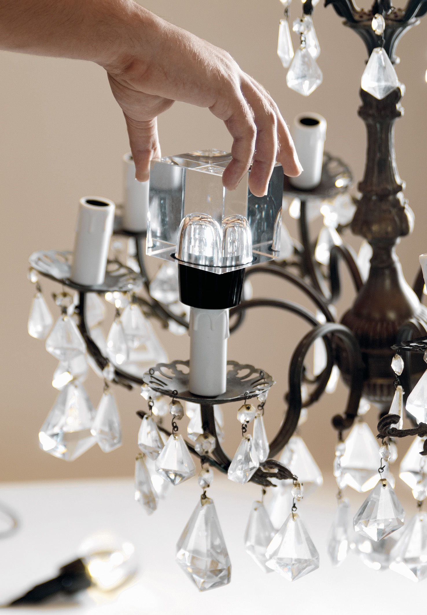 一个新的灯泡概念,在水晶,技术和复杂的透明度之间的对话,经过刻面手工处理.灯泡被重新解读为闪闪发光的宝石,三款灯泡由三种不同水晶形状和三种颜色组成.