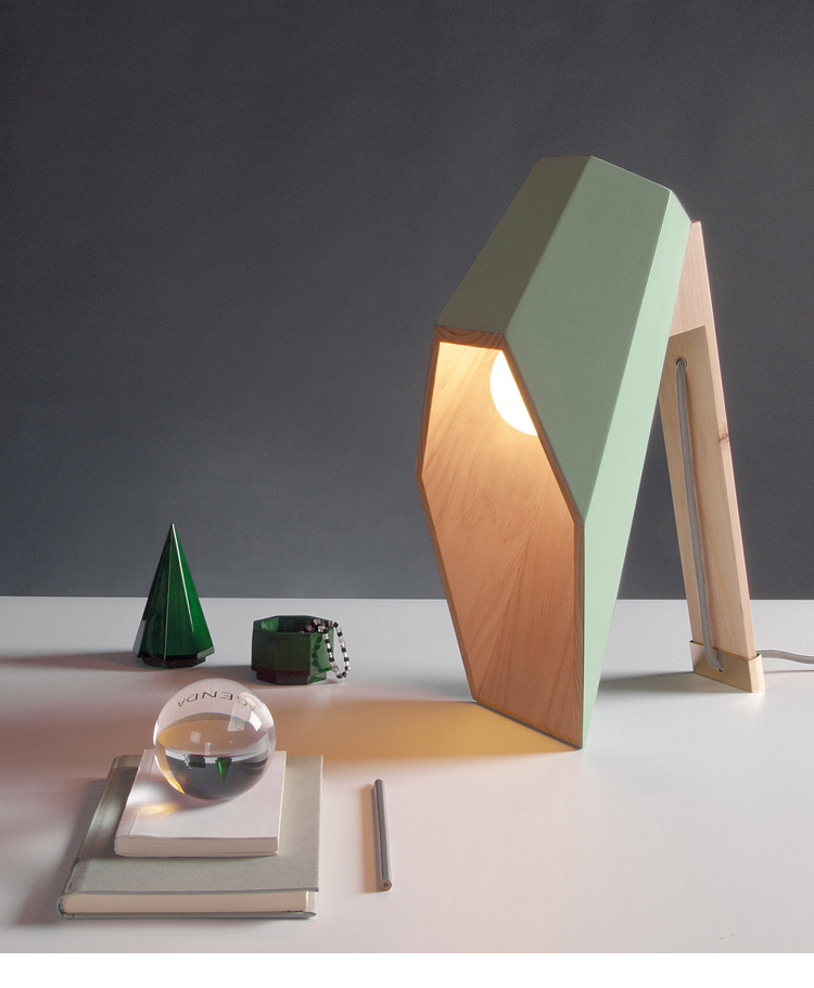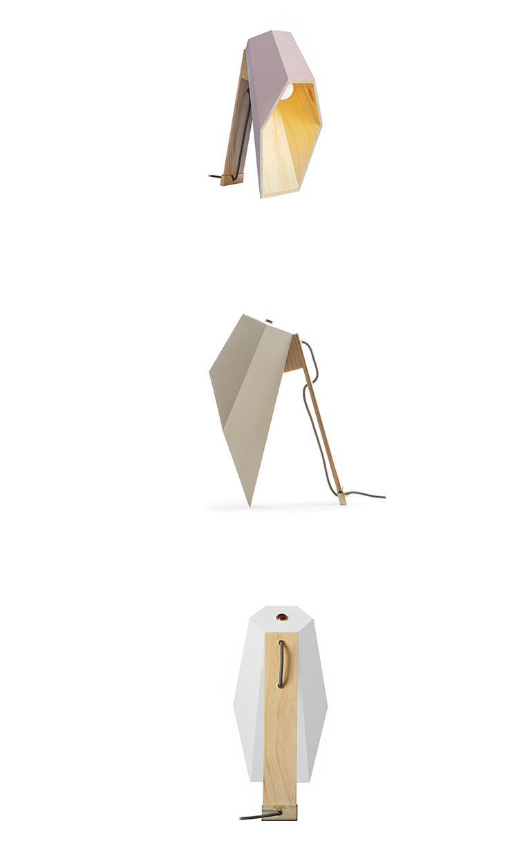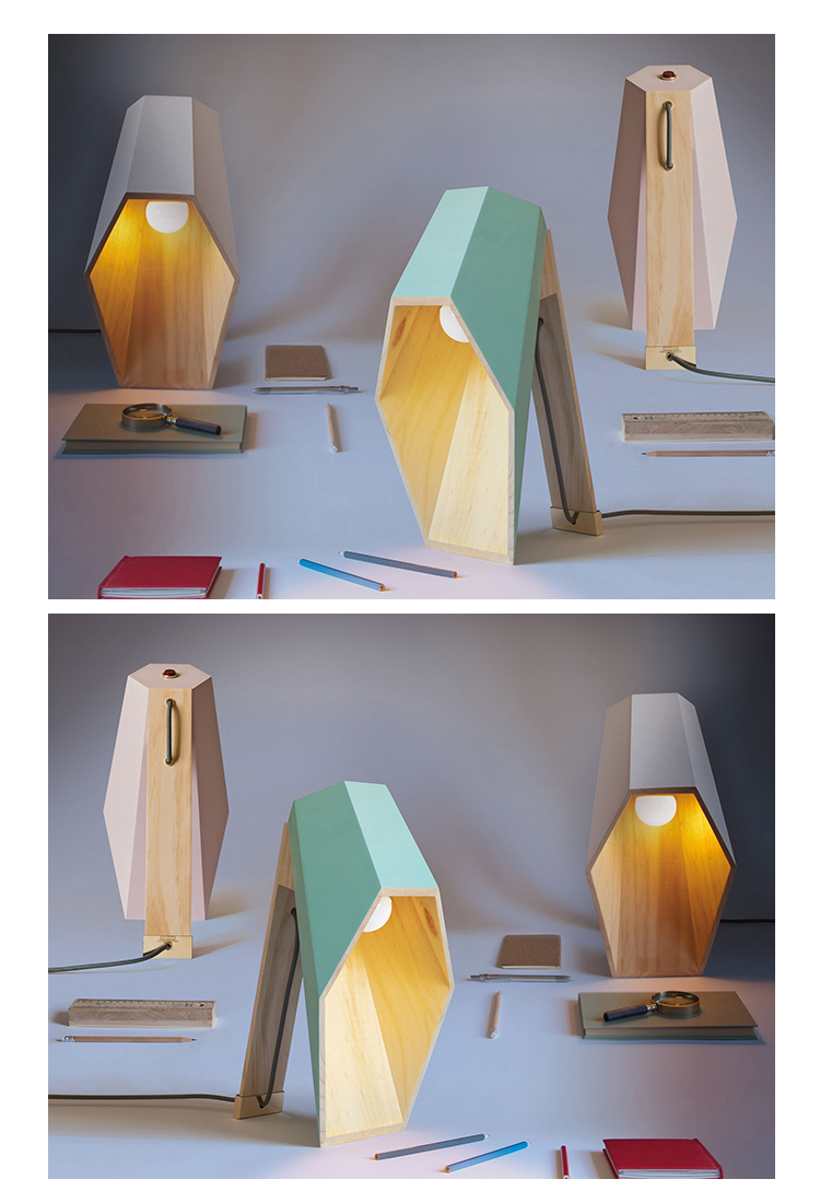 Woodspot是一盏台灯,灵感来自Rene Magritte的“光明帝国”。该设计由一个底座和一个类似引擎盖的透光器组成,它提供了一种让人想起路灯的聚光灯,就像马格里特世纪中叶的油画中所看到的那样。木制的底座是用松木手工制作的,用天然油完成。扩散器采用白色或粉彩粉红或绿色漆,可与高达60W的灯泡一起使用。