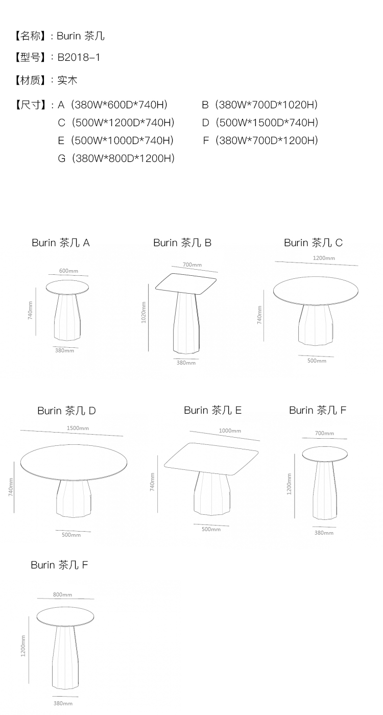 Burin 茶几 系列尺寸/示意图