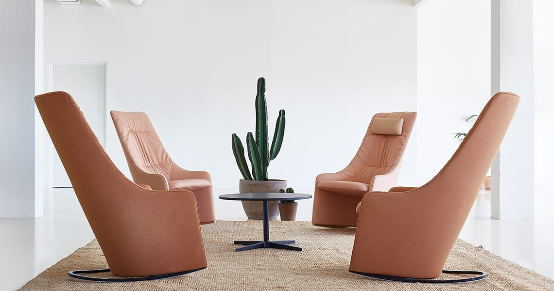 凪提供2个版本:摇摆和固定的扶手椅。