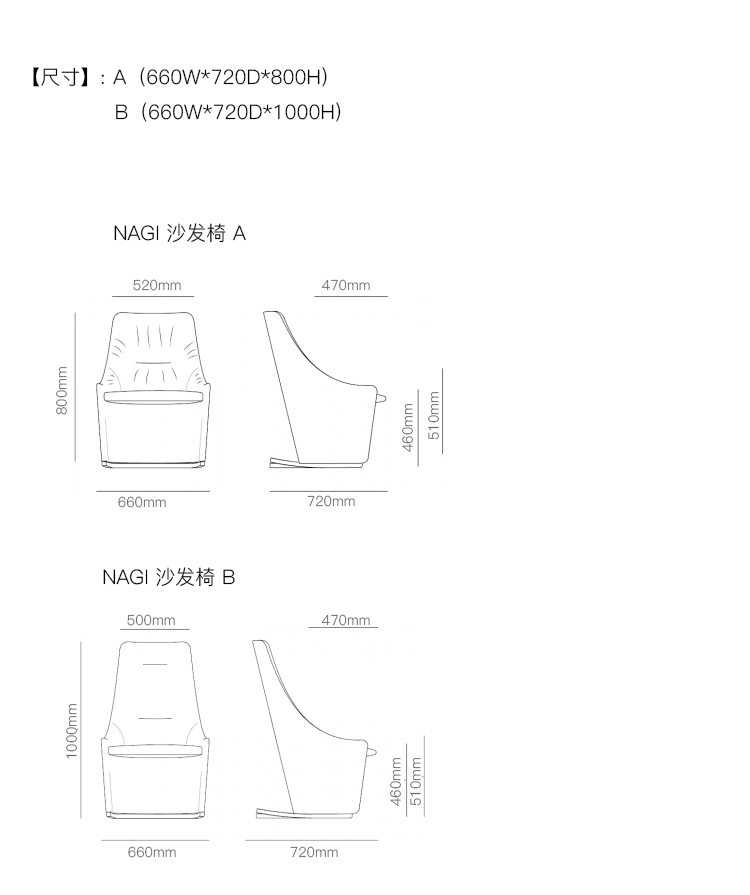 NAGI 沙发椅 系列尺寸/示意图
