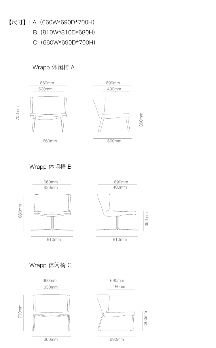 Wrapp 休闲椅 系列尺寸/示意图