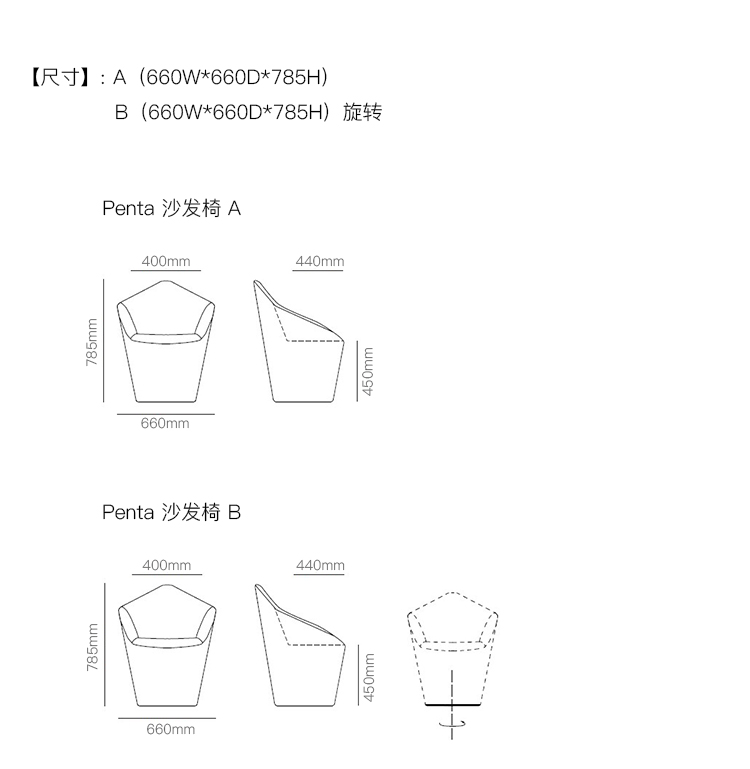 Penta 沙发椅 系列尺寸/示意图