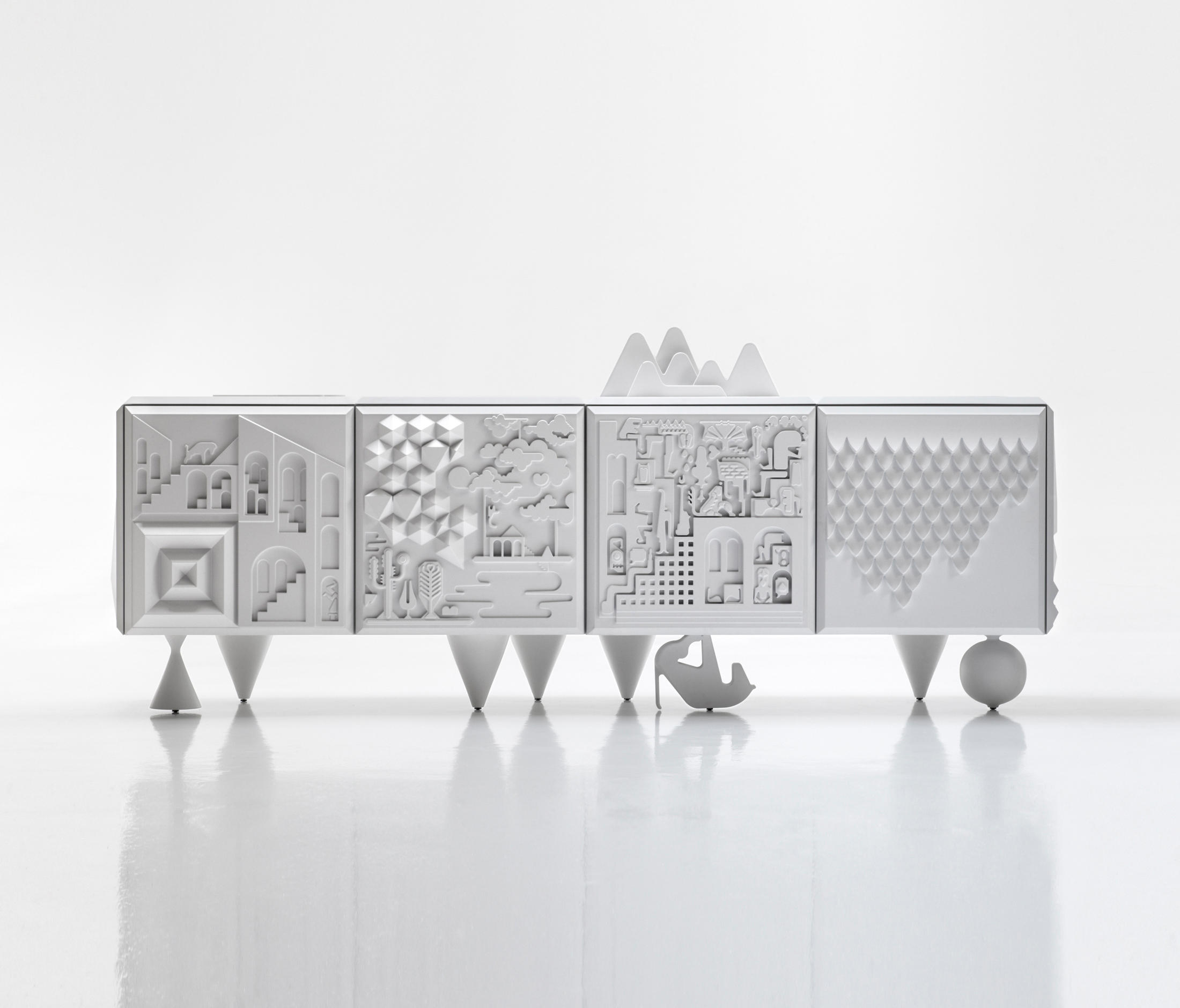 Antoine + Manuel设计了一件充满艺术和幻想的家具。黑色或白色MDF上漆的车身和搁板。整体式聚氨酯门的门,平顶和侧面。固体al木脚合为一体,用与门相同的颜色上漆和微纹理。很少有图形设计师(在这种情况下,是两个)进入家具设计领域。我们必须回溯很久才能找到它们这正是Antoine Audiau和Manuel Warosz所做的,这是一对非凡的巴黎图形艺术家,他们以Antoine + Manuel的名义签名。内阁Tout va Bien 他们为BD Barcelona设计公司推出的这个新系列而设计,它是应用艺术,象形文字,当代图形,幻想和乐观主义的令人惊讶的混合物。它的生产具有昨天的品质,却使用了当今的技术。颜色:白色和白色深灰色。