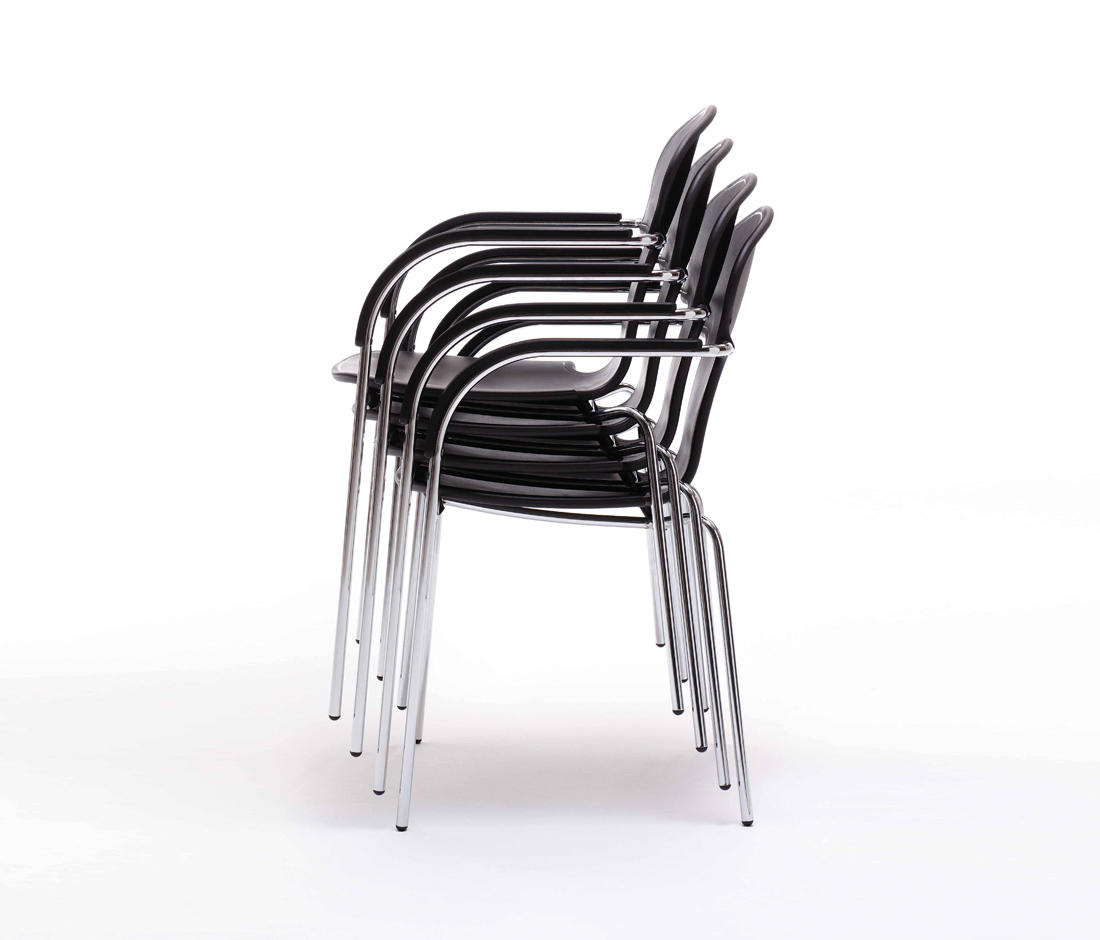 镀铬或喷漆的结构,灰色金属钢管做微结构处理。座椅和靠背壳体采用白色或珍珠灰色气体注入聚丙烯或胶合板上漆的橡木或文格。可选:灰色或黑色整体式扶手。可提供:长凳和桌子侧面黑色椅子。椅子,扶手椅和凳子可堆叠。Varius椅子即将满25岁生日时,我想到了设计更经济,多功能的版本以继承其优点的可能性。最重要的是,人体工程学(使Varius成为非常舒适的椅子)及其独特的靠背(比起无数次虚弱的模仿要英俊得多)。基于这些我没有准备放弃的优点,我已经能够设计一系列椅子,包括:无扶手椅子,