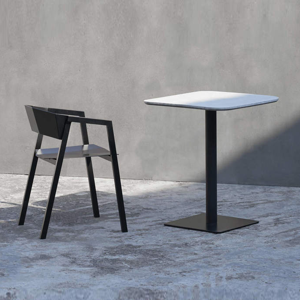 本产品采用了混凝土掺入石英粒的水磨石,随机分布的石英为家具提供了足够的装饰,既简朴又精致。 水磨石板材与支架通过巧妙的结构连结,垂直错开的支架使产品整体更具形式感。 倒角使得整体更具细节,利落的直线,是本土创造追求并相信的简单,和直接的材质表达的手法,没有多余的装饰造型线。