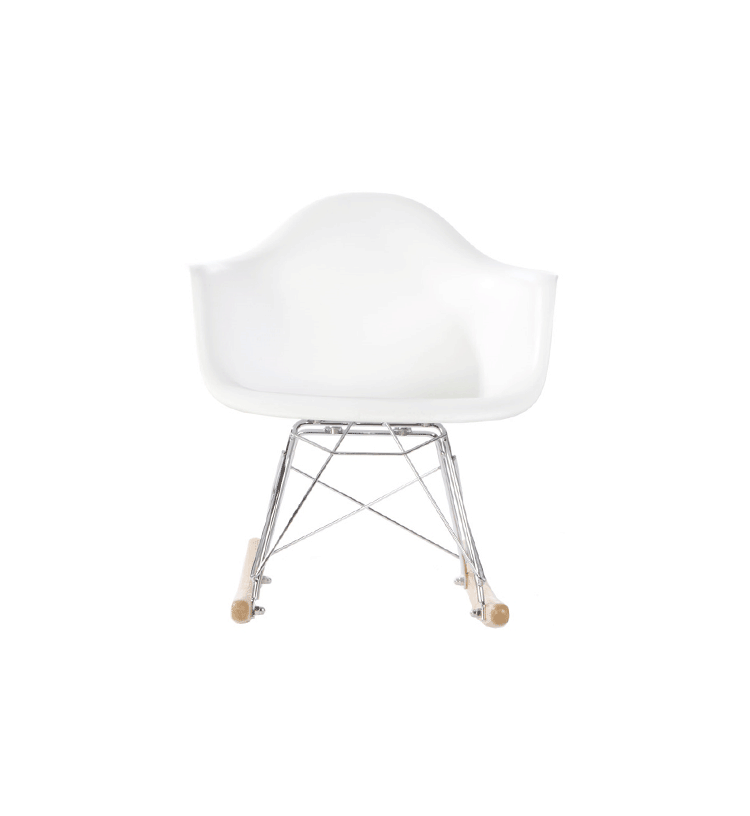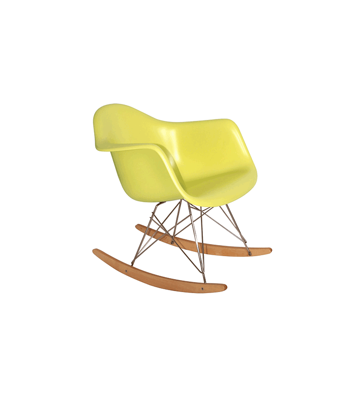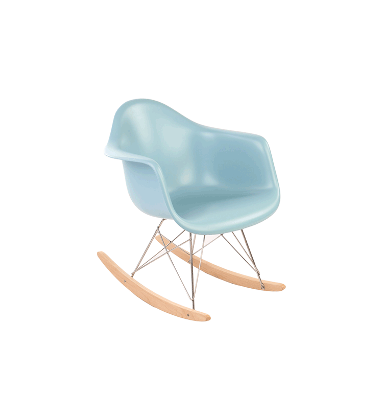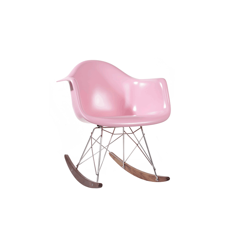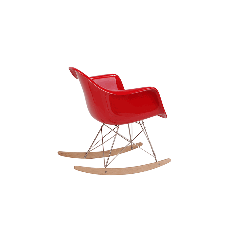 Charles Eames&Ray Eames伊姆斯夫妇是20世纪美国设计界最完美的一对伴侣,在分工上Charles主要从技术、材料和生产的角度来考虑问题,而Ray则更多地考虑形式、空间和审美。他们将结构、功能、心理、美学等元素贯穿于产品设计的各个方面。他们的设计实践极大地丰富了现代设计的理论。伊姆斯夫妇一生设计了很多产品,几乎都是经典之作,伊姆斯夫妇设计的产品都有着一种现代、简约的气息。这款Child's Eames Rocking Chair(儿童版伊姆斯摇椅)是伊姆斯摇椅的儿童版,专为小朋友设计的小型号,是由伊姆斯夫妇在20世纪50年代的时候设计的,摇椅外形宛如一朵盛开的郁金香,款式现代、时尚、美观、 实用,是一个非常具有个性化的设计作品。被视作一件放置在家中的艺术品,摇椅的表面采用出模一次成型,使得表面光滑平整,拐角 处圆滑。精心设计的座位、靠背与扶手连 成一体,更具有人性化。