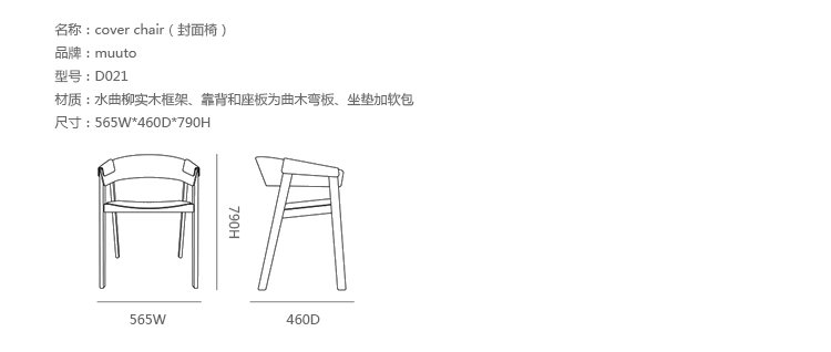 cover chair(封面椅)是经典木制扶手椅现代重新诠释,由著名设计师Thonas Bentcen设计。扶手的巧妙设计提供了舒适的工作感觉,水曲柳实木框架、靠背和座板为曲木弯板、坐垫加软包,无论用在家庭饭桌、书桌前,或者餐馆、酒店房间或任何其他公共场合都非常理想。