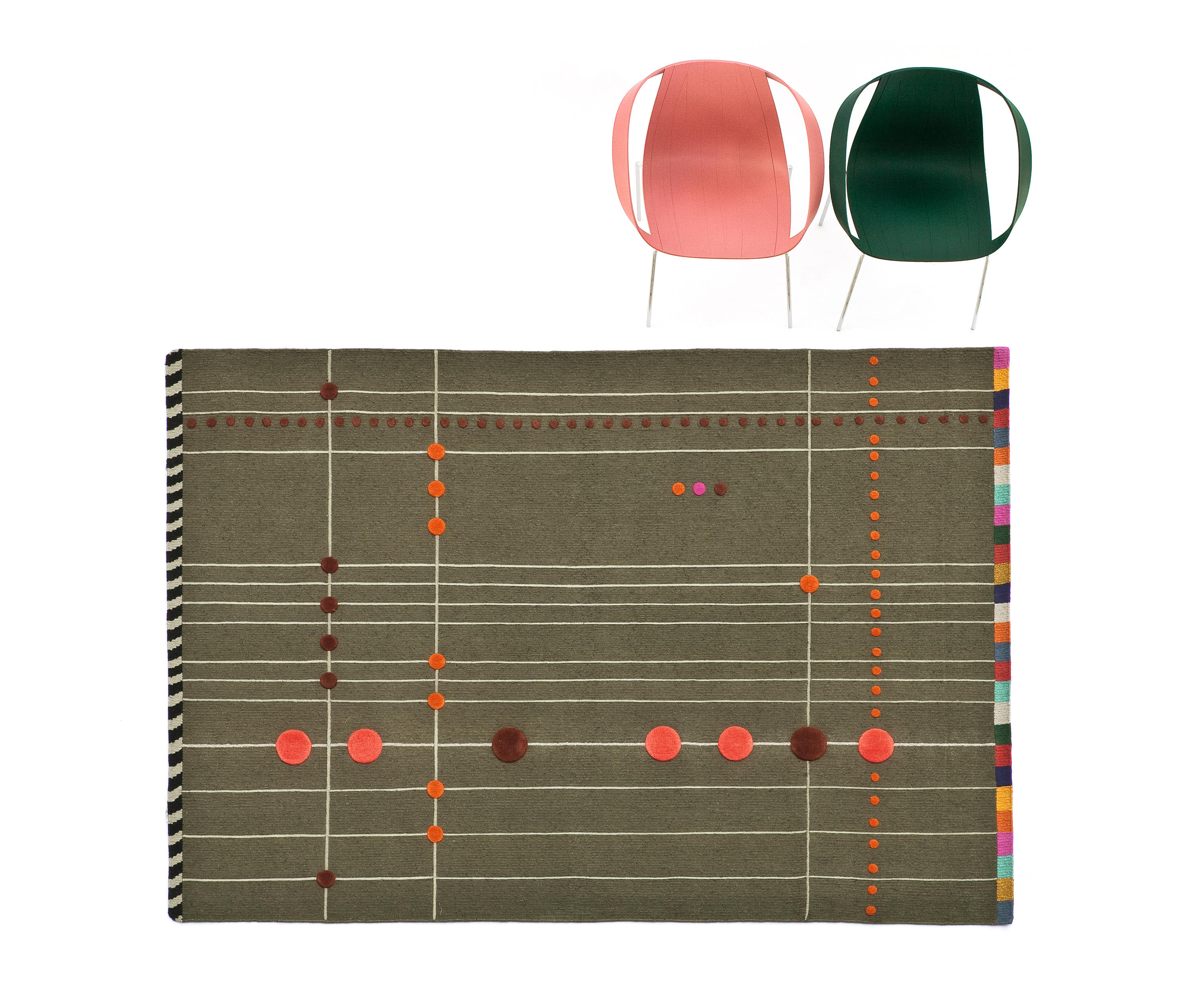 除了美丽的羊毛卷曲,Rabari有四个地毯(两个是米色的,一个是黑色的,一个是橄榄绿的),还有一个突出的设计,一幅Doshi Levien设计了一种精致的节奏和独特的视觉美感组合的画布。
