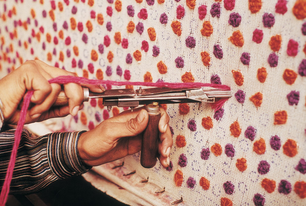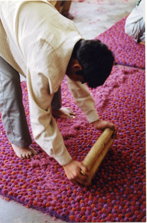 这个系列的灵感来自于永恒的圆点,它探索了体积和纹理,为地毯增加了一个三维的方面。光滑的表面带有彩色圆点,形成一种根据光线变化的运动感觉。
