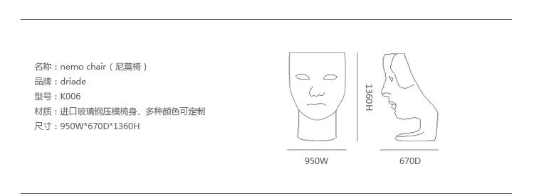 在2010米兰家具展上,意大利家居厂商Driade 推出了由设计师Fabio Novembre 设计的面具椅Nemo Chair。Nemo Chair 很高,足以把坐在上面的人整个都隐藏到“面具”的后面,让你有一种安全感的同时,其造型也极具希腊雕塑般的美感。