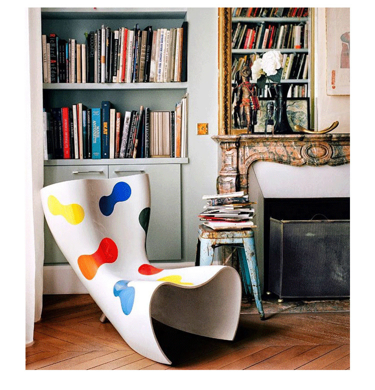 澳洲設計師 Marc Newson 1993 為義大利家具大廠 Cappellini 設計這款 Felt 造型椅,主要結構以強化玻璃纖維製成,後方拋光鋁製腳座與前體結構形成穩固的"類三腳"底座,前衛大膽的造型十分具有視覺效果,是現代設計中的經典作品。