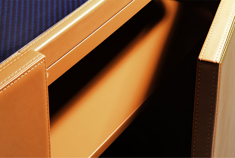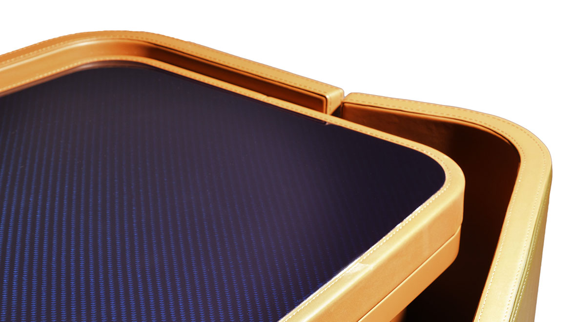 The leather top is coordinated with the new storage modules, in original versions with three and four doors and carbon fibre tops in the elegant Blue Royale finish. A functional complement with a compact design, equipped with many compartments, to be opened and closed by hand or by means of a magnetic locking badge. Wireless recharge stations complete the range of high-tech optionals for this model.