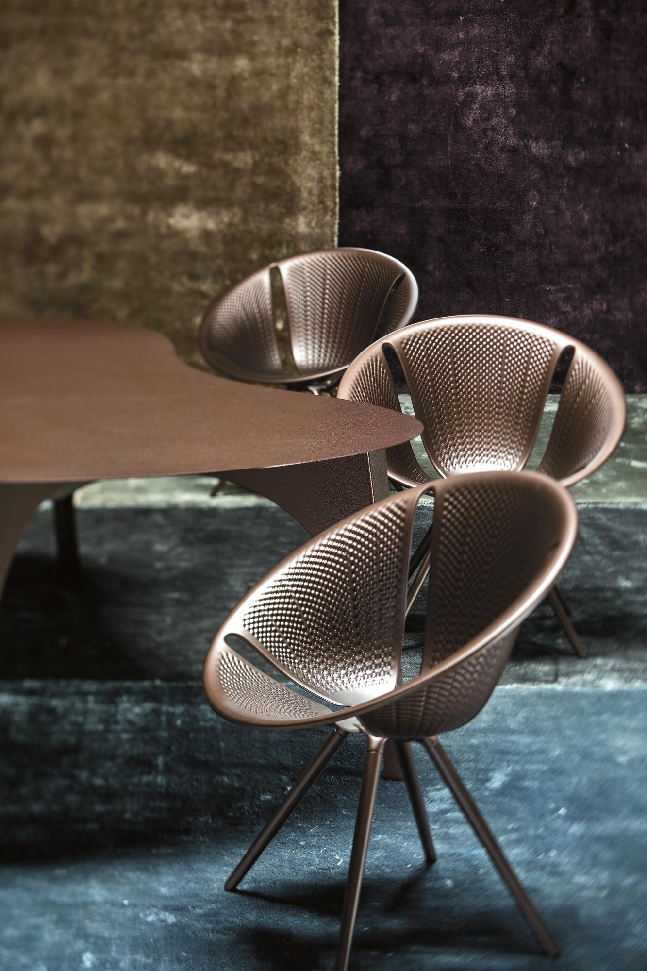 硅藻是一种可叠放的铝椅子,它的形状来自硅藻的截体,这是一种原始的单细胞生物,在世界各地的水体中发现了硅骨架。在三维空间中,精细的装饰几何学,一个由探索数学规则而设计的奇迹,它支配着生物的营养发展。生产采用汽车行业发展的技术,降低了座椅的重量和生产成本;压铸铝板保证了最轻的重量,消除了对钢材的需求,同时保证了同等水平的性能。