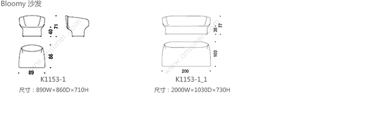 Bloomy 沙发 系列尺寸/示意图