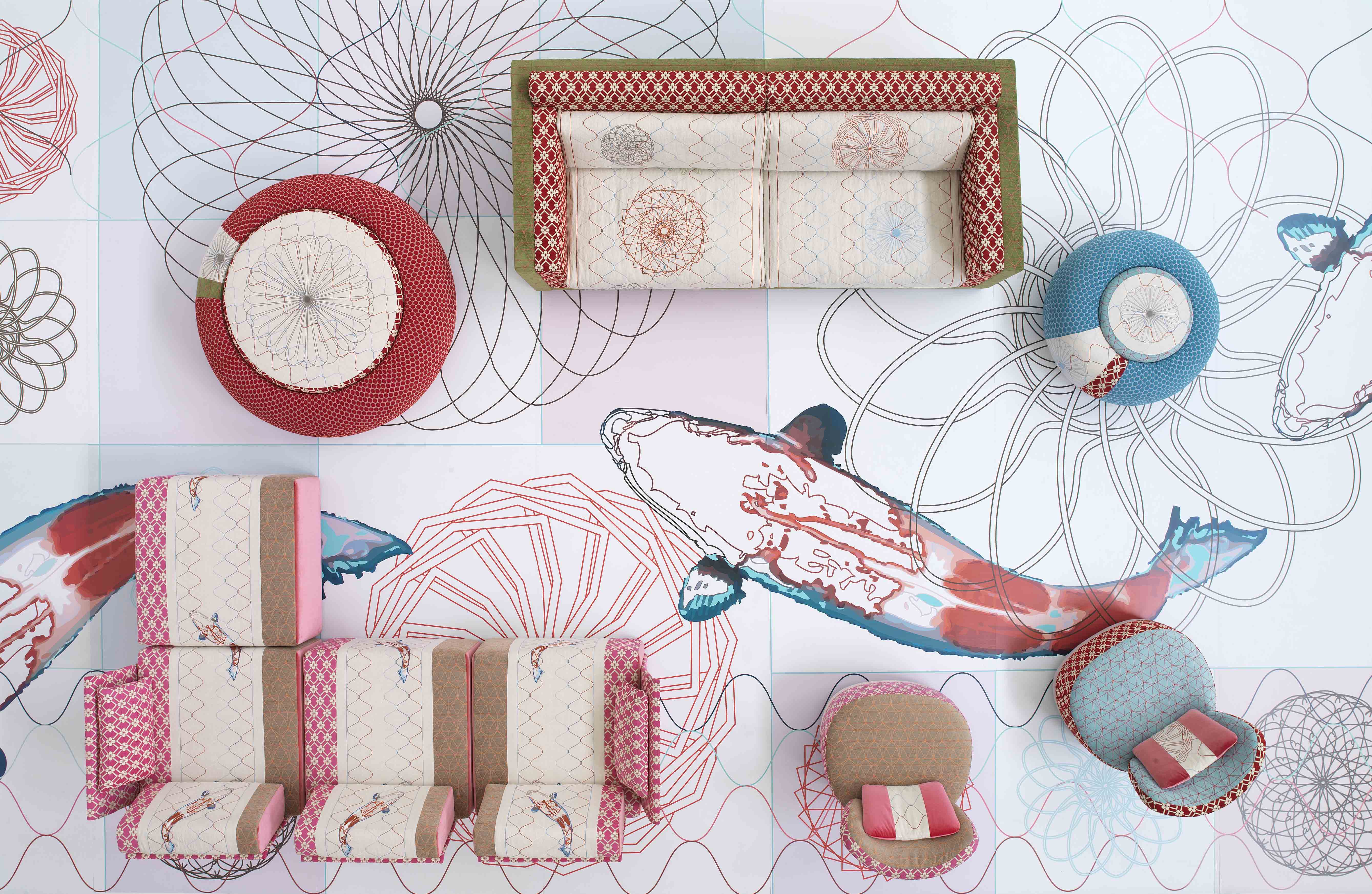 寿司收集、Karkaoma,Juju, Donut, Joy, block seat,东方的象征意义,花卉图案和数字网格:集合中发现其身份分层的丰度。有各种各样的输入和刺激的积累,一种从建筑形式到民间传说的各种图像的疯狂流动。传统的,未来主义的,数字理性的,三维的,浪漫的,迷幻的兴奋,视觉上的大融合,对空的恐惧,和谐的,不端庄的,精致的,几何的严重…无尽的图像和视觉,既不害怕也不威胁,而是欢迎用户进入一个柔软的,催眠的万花筒。