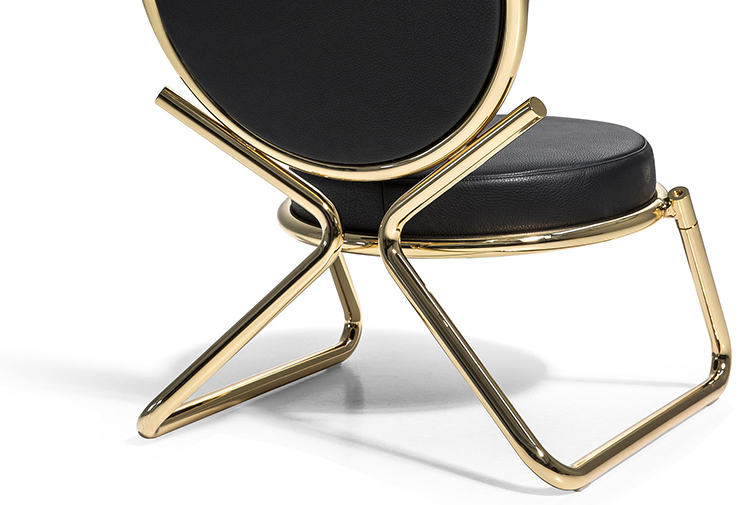 两个圆圈,两个基本模块接枝到本领域的结构几何结构中,去除了灵感,公开地传达了最大限度简化的趋势。这是高品质工业生产的前奏,这是一种优雅的经济,由镀铬钢框架提供的可能性表达,将设计结构设计成一个完整的座位家庭。这样,一把椅子和一把凳子就诞生了,没有扶手,加上一个小小的双座沙发,这是一种精致的正式进化,由良好的品味和阶级所决定。这是一种回归秩序,向一种同时奢华和合成的语言过渡。