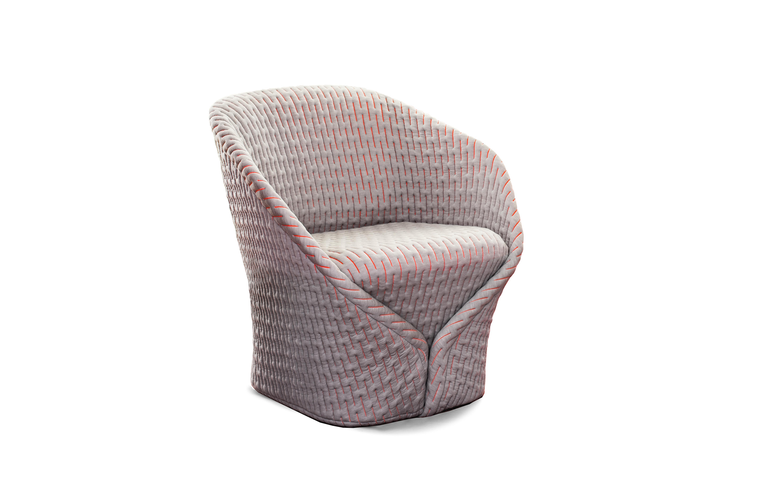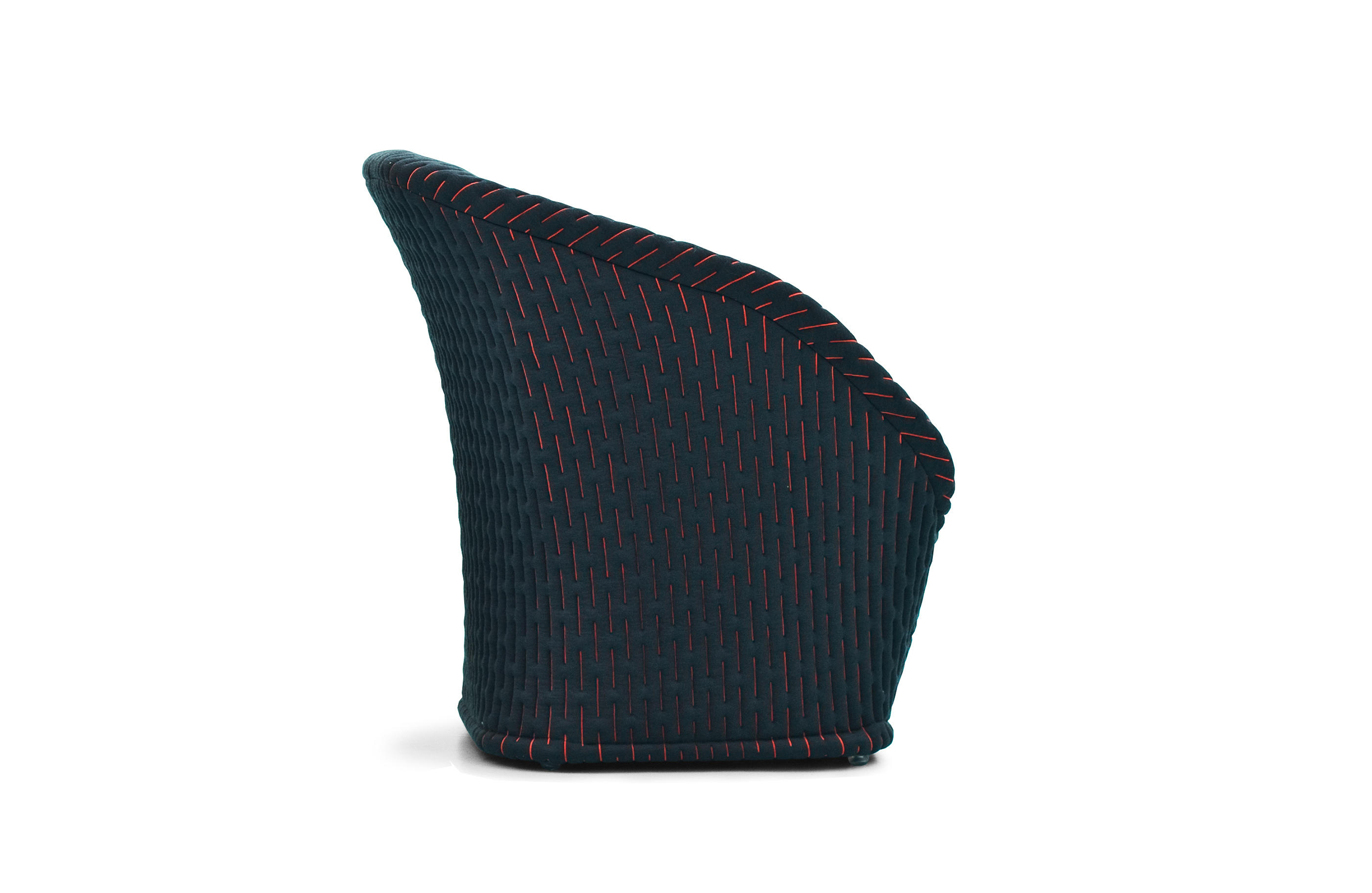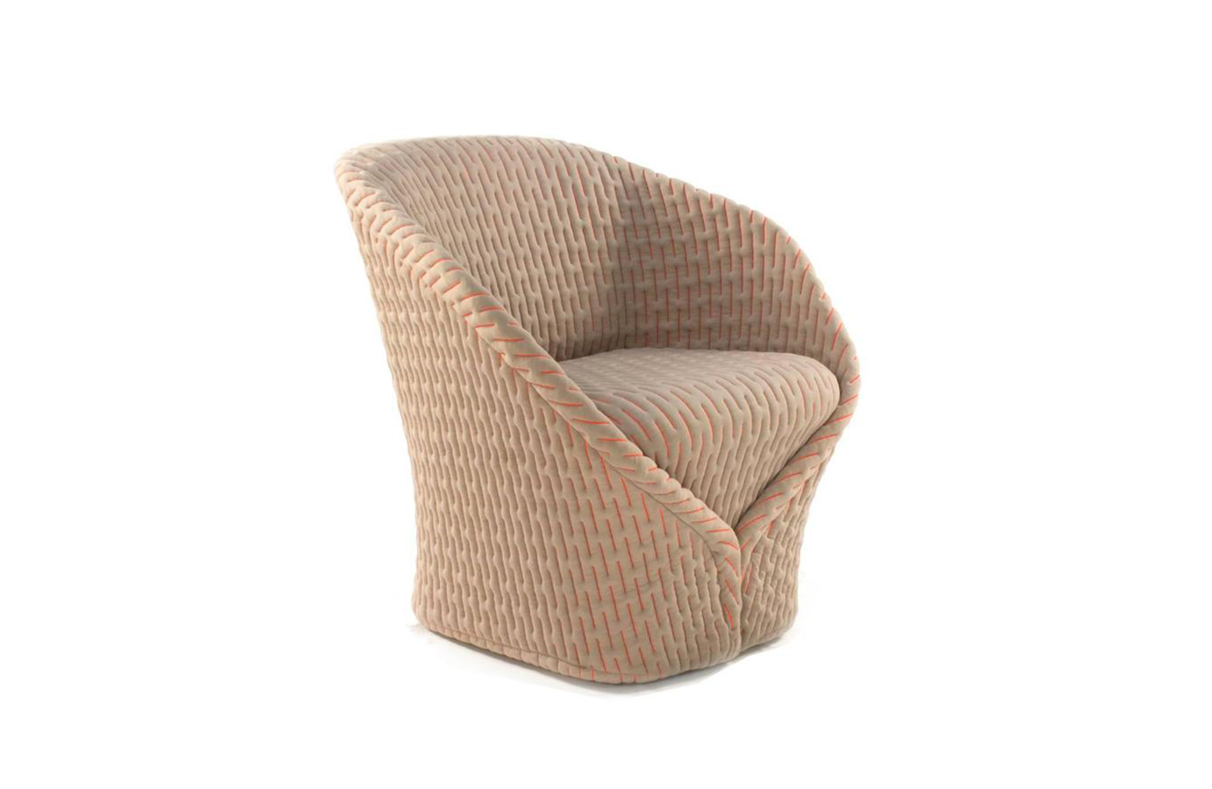 伪装成休闲椅的扶手椅,用他们的外表来控制空间。这主意很简单,用一件有衬垫的大衣盖住金属框架然后把它变成别的东西。一种非常直立的姿势,扶手的形状让人联想到双排扣外套的翻领,而这种相似之处就在中央扣扣上。室内装潢变成了衣服,可以在不过度的情况下,将赤裸的身体转变成一种追求自身内在同一性的物体。
