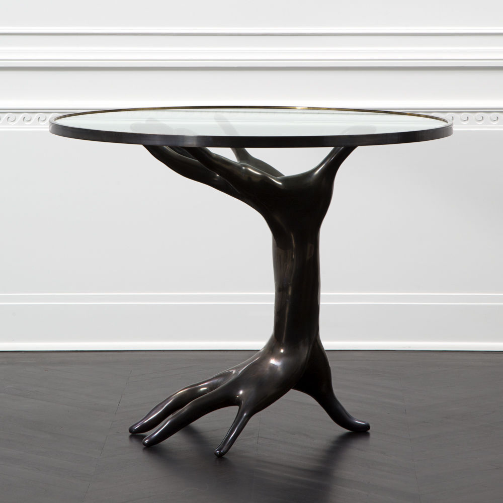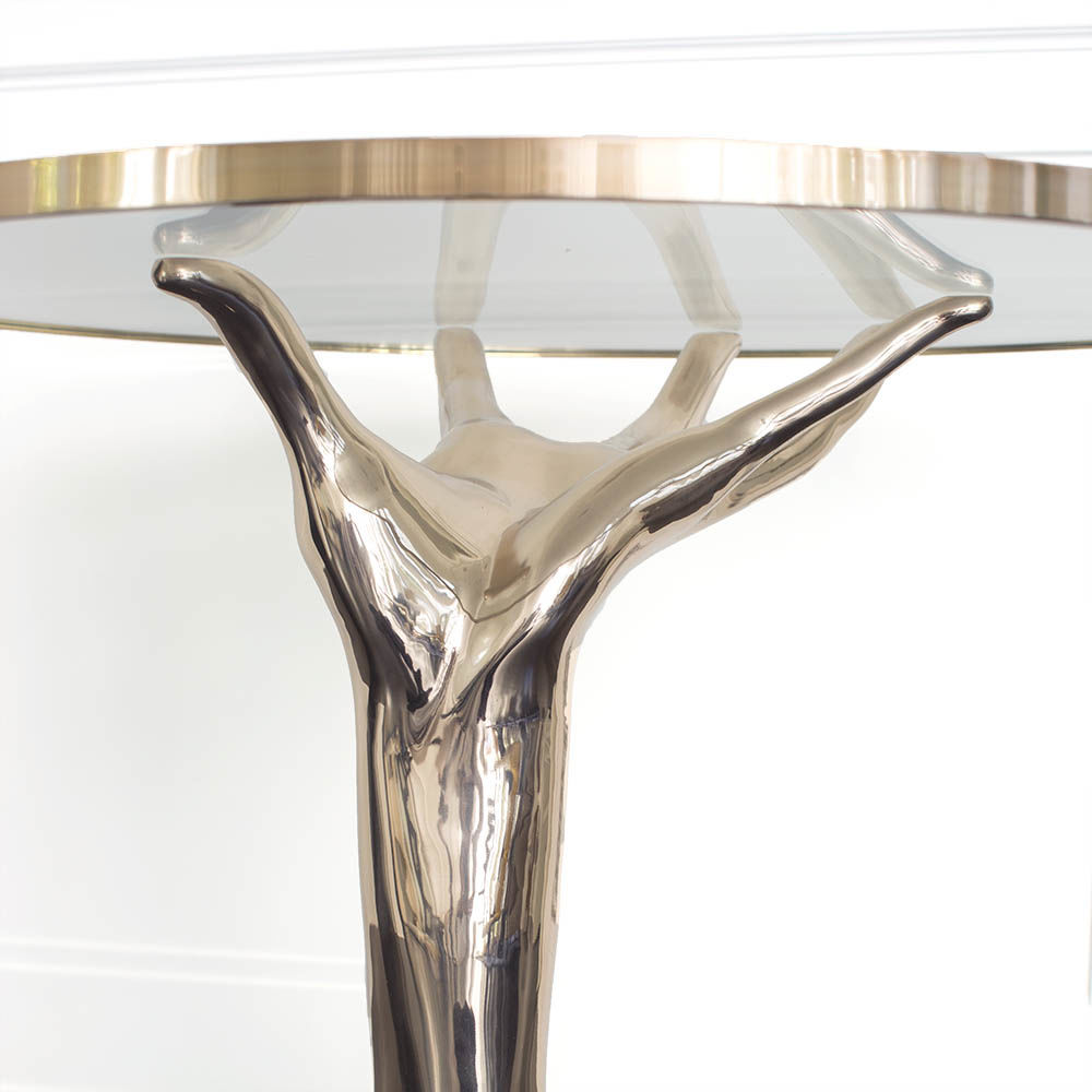 豪华雕塑的Dichotomy桌是一款令人惊叹的独特陈列桌,灵感来自古典的比喻装饰。 底座采用青铜铸造,手工精心打磨。 钢化玻璃顶部采用匹配的青铜饰边。 直径36英寸,这张桌子是一个完美的入口,或强调一个正式的座位群。 Dichotomy桌有青铜或油擦青铜饰面。