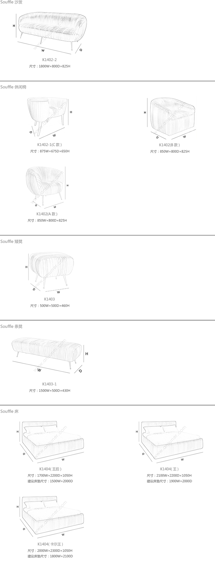 Souffle 沙发 系列尺寸/示意图