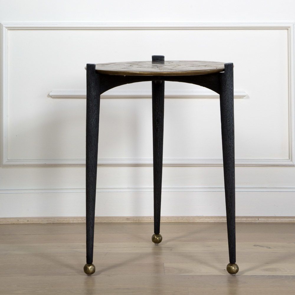可能是我们所有边几中最复杂的,Garcon桌子有三条腿用黑色铝铸造,逐渐变成黄铜球脚。 腿部的纹理就像雕刻的木头和坚固的青铜顶部,带有抛光的青铜色,具有手工锻造的雕塑品质。