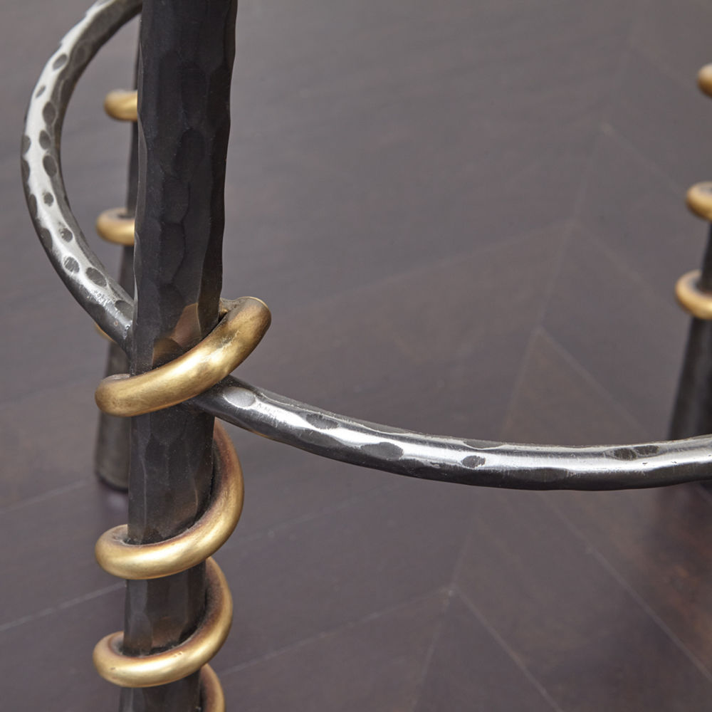 这款性感而简约的凳子采用手工锻造的黑色钢制成,并配有青铜蛇纹细节。 每个坚实的,切片雕刻的腿都是手工涂抹的深油擦青铜色。 座椅采用柔软的黑色纹理皮革装饰。 Serpent Stool采用黑色手工锻造钢材制成,可以采用各种纹理,奢华皮革装饰。