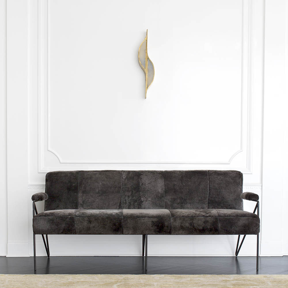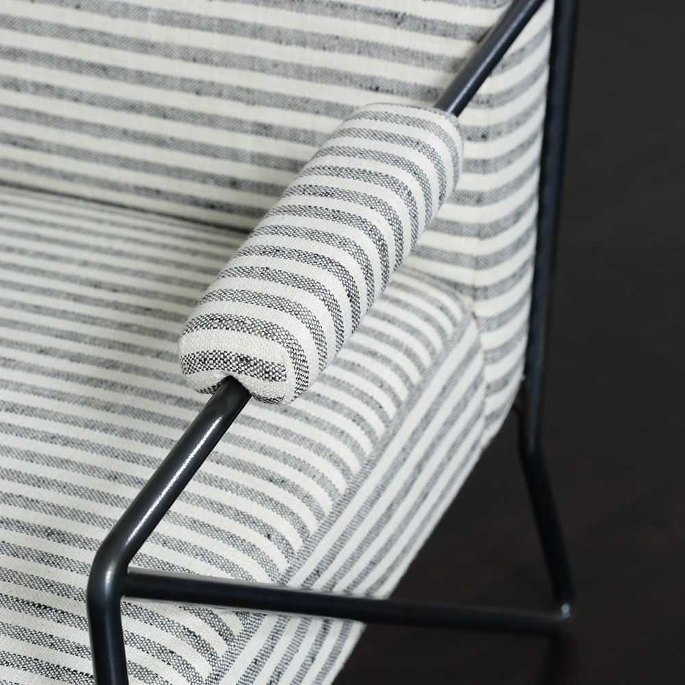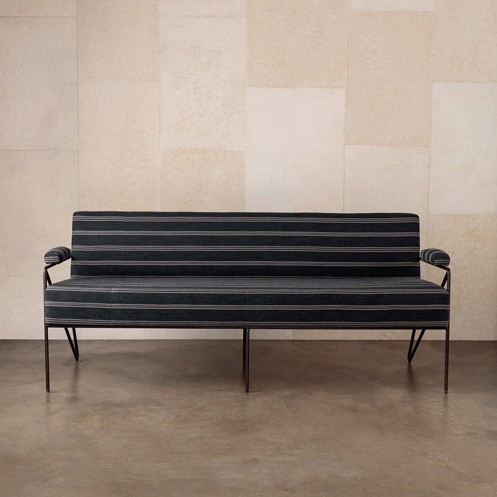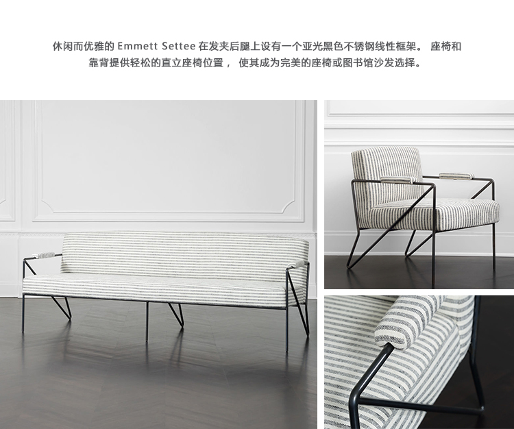 休闲而优雅的Emmett Settee在发夹后腿上设有一个亚光黑色不锈钢线性框架。 座椅和靠背提供轻松的直立座椅位置,使其成为完美的偶尔或此商品在我们的洛杉矶工作室手工制作。图书馆沙发选择。 腿具有多边形滑动以保护地板。