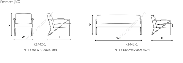Emmett 沙发 系列尺寸/示意图