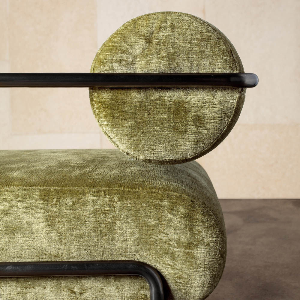 Ardent沙发是一款休闲座椅,采用不锈钢框架包裹的紧身背垫和瀑布座椅。 优雅的弧形框架采用手工涂制的老式白铜色。 这款小巧沙发的简洁线条赋予其现代感,同时保持平易近人的舒适感。