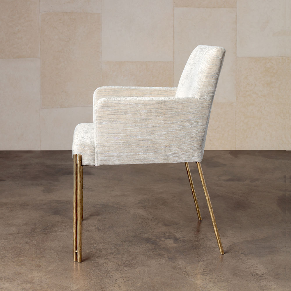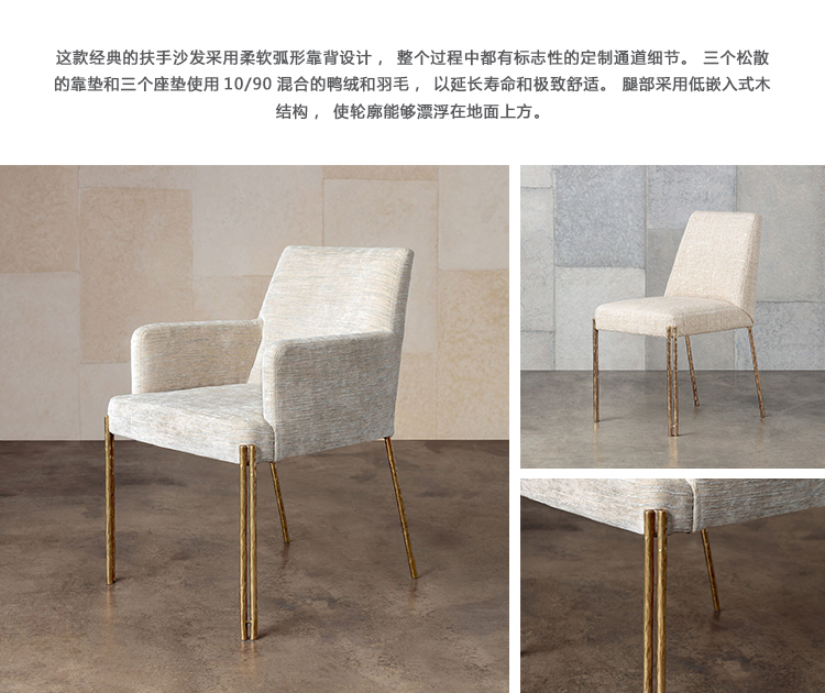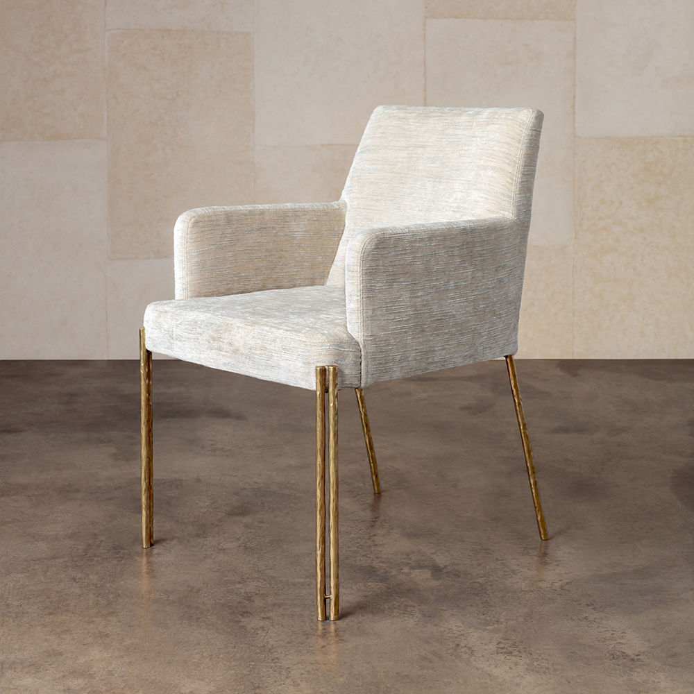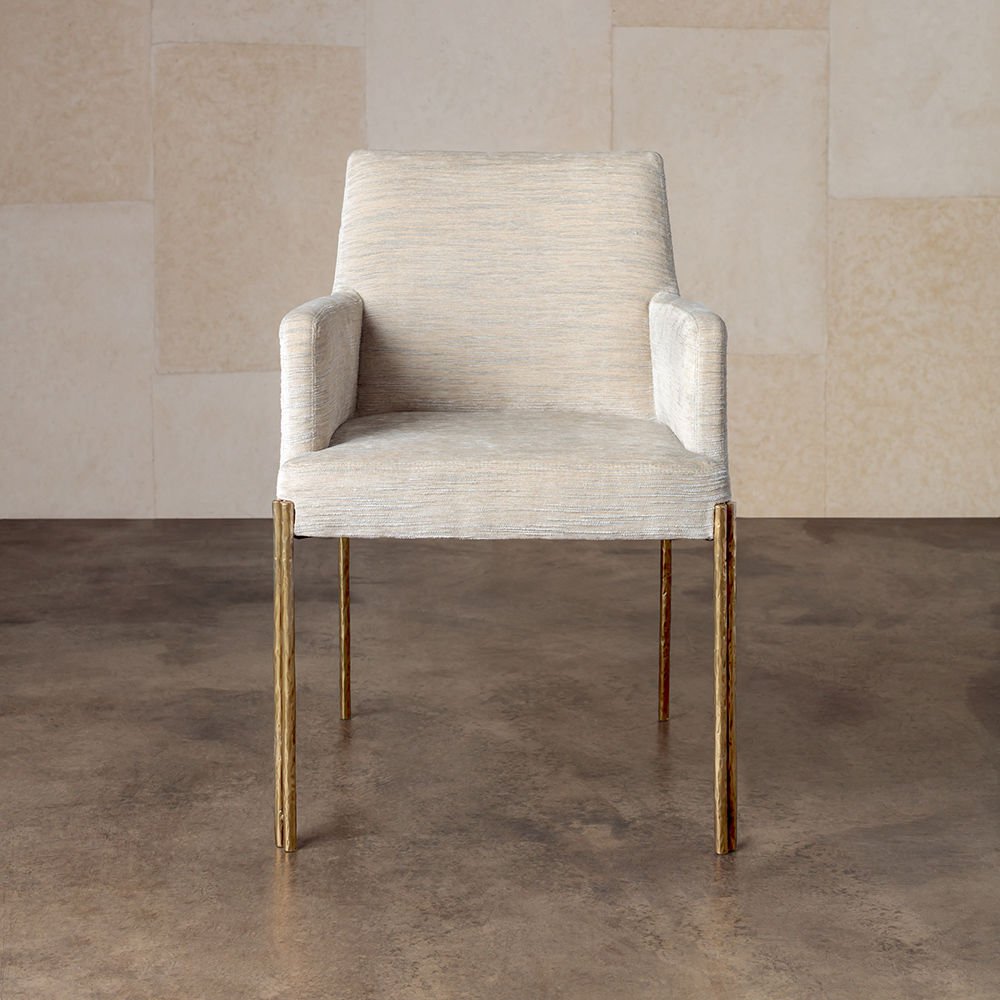 Melange 餐椅是经典造型的大胆诠释,是细致入微的现代设计的典范。 这款扶手椅采用坚固的铸造黄铜腿和手工制作而成,并采用轻微抛光的抛光黄铜色。 软垫主体有各种精选面料和皮革可供选择。