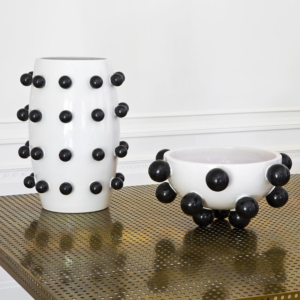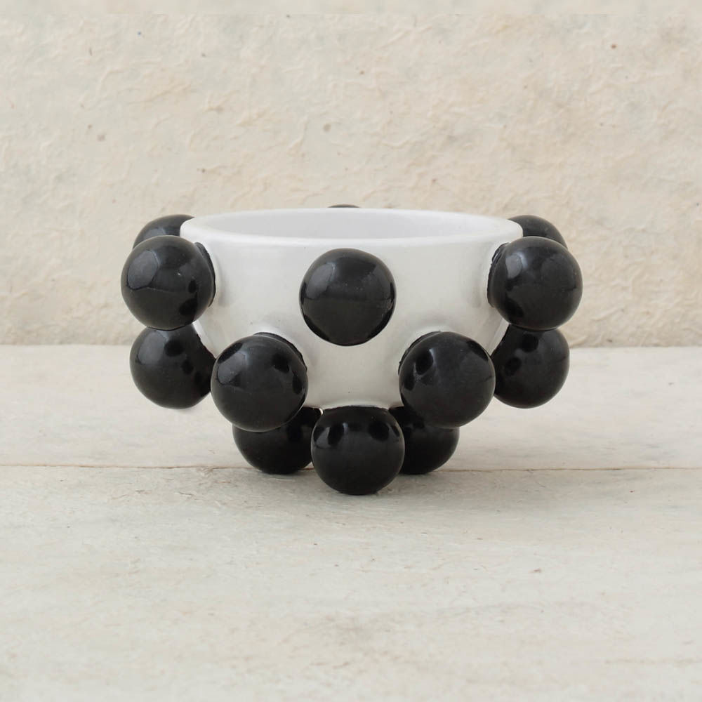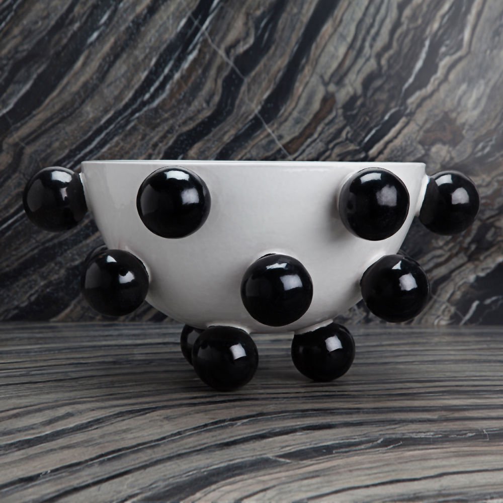 我们的流行碗是手工雕刻和手绘的哑光黑色和白色釉。有趣而又复杂,这款产品将给任何桌面带来活力。