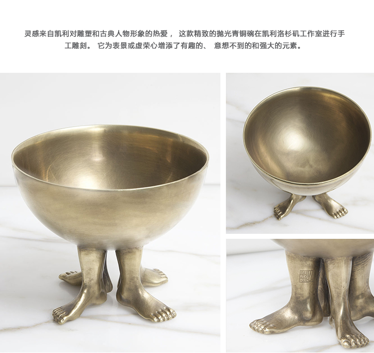 灵感来自凯利对雕塑和古典人物形象的热爱,这款精致的抛光青铜碗在凯利洛杉矶工作室进行手工雕刻,增添了有趣的、意想不到的和强大的元素。