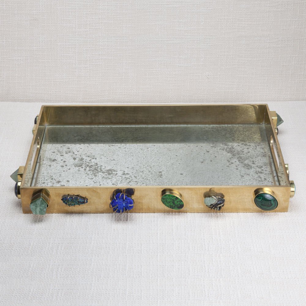 独一无二的托盘采用从世界各地收集的手工精选石头。 它采用抛光黄铜制成,是一款灵魂时尚的配饰,为任何空间增添精神和色彩。