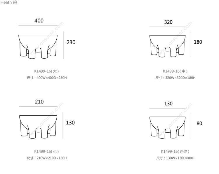 Heath 碗 系列尺寸/示意图