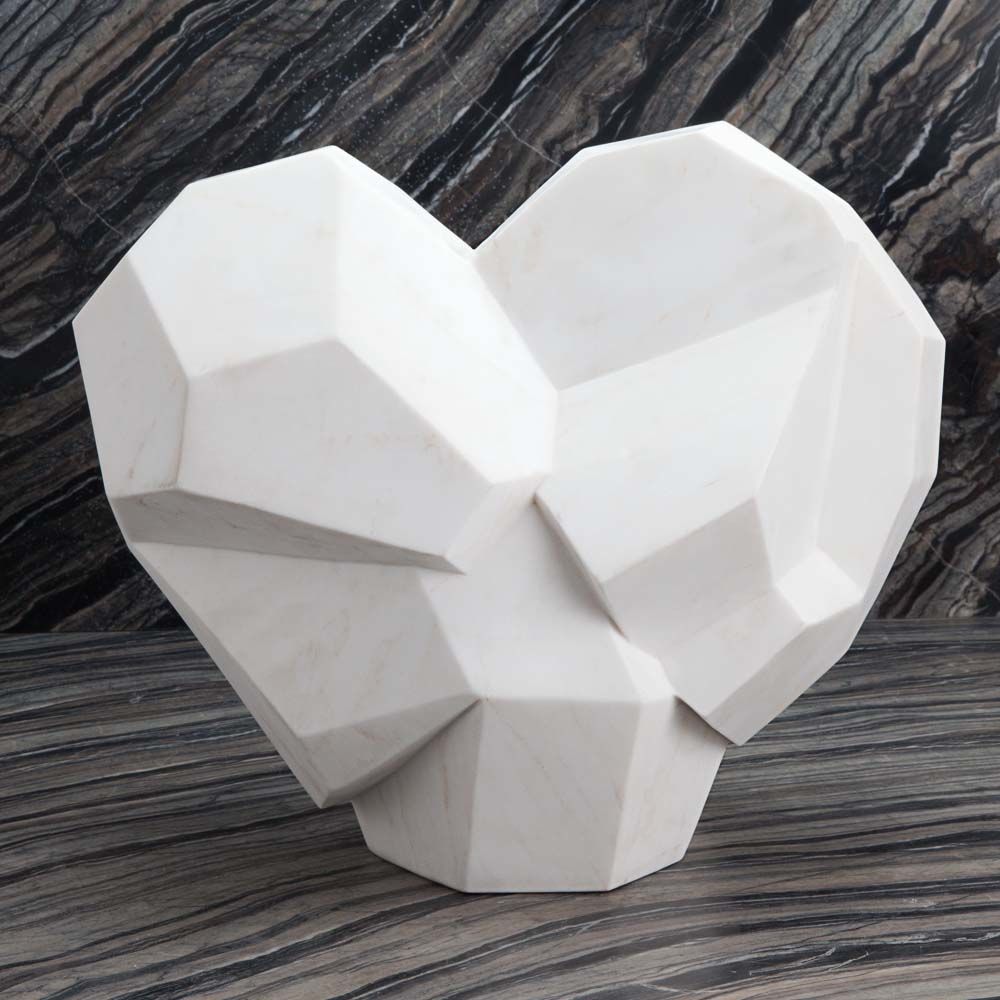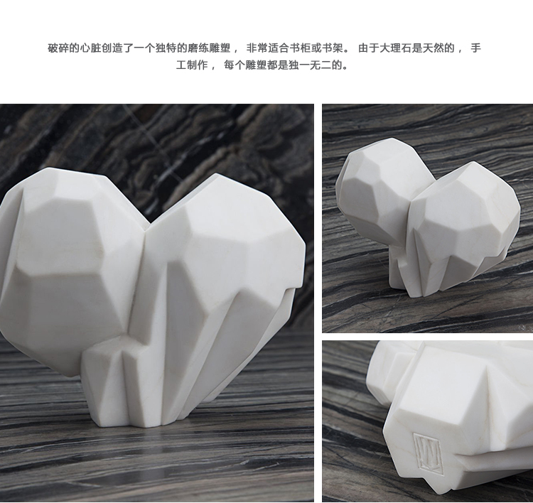破碎的心脏创造了一个独特的磨练雕塑,非常适合书柜或书架。 由于大理石是天然的,手工制作,每个雕塑都是独一无二的。