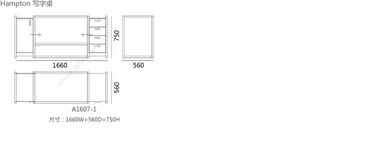 Hampton 书桌 系列尺寸/示意图