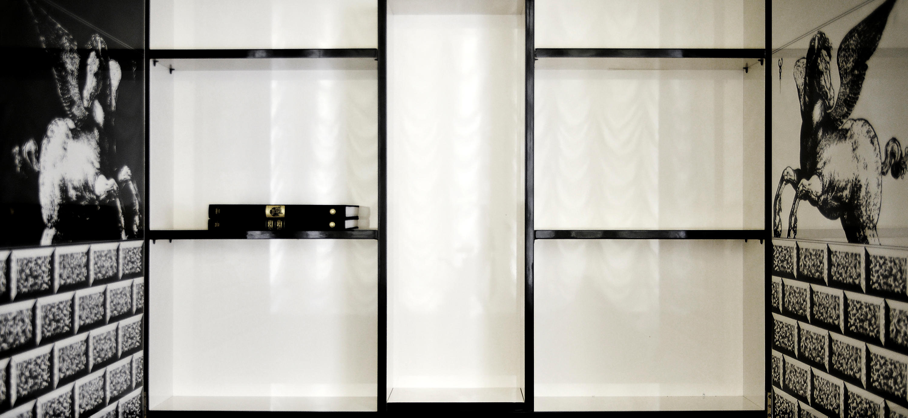 黑色和象牙开关交替作为Damas书架的一个显着特征。