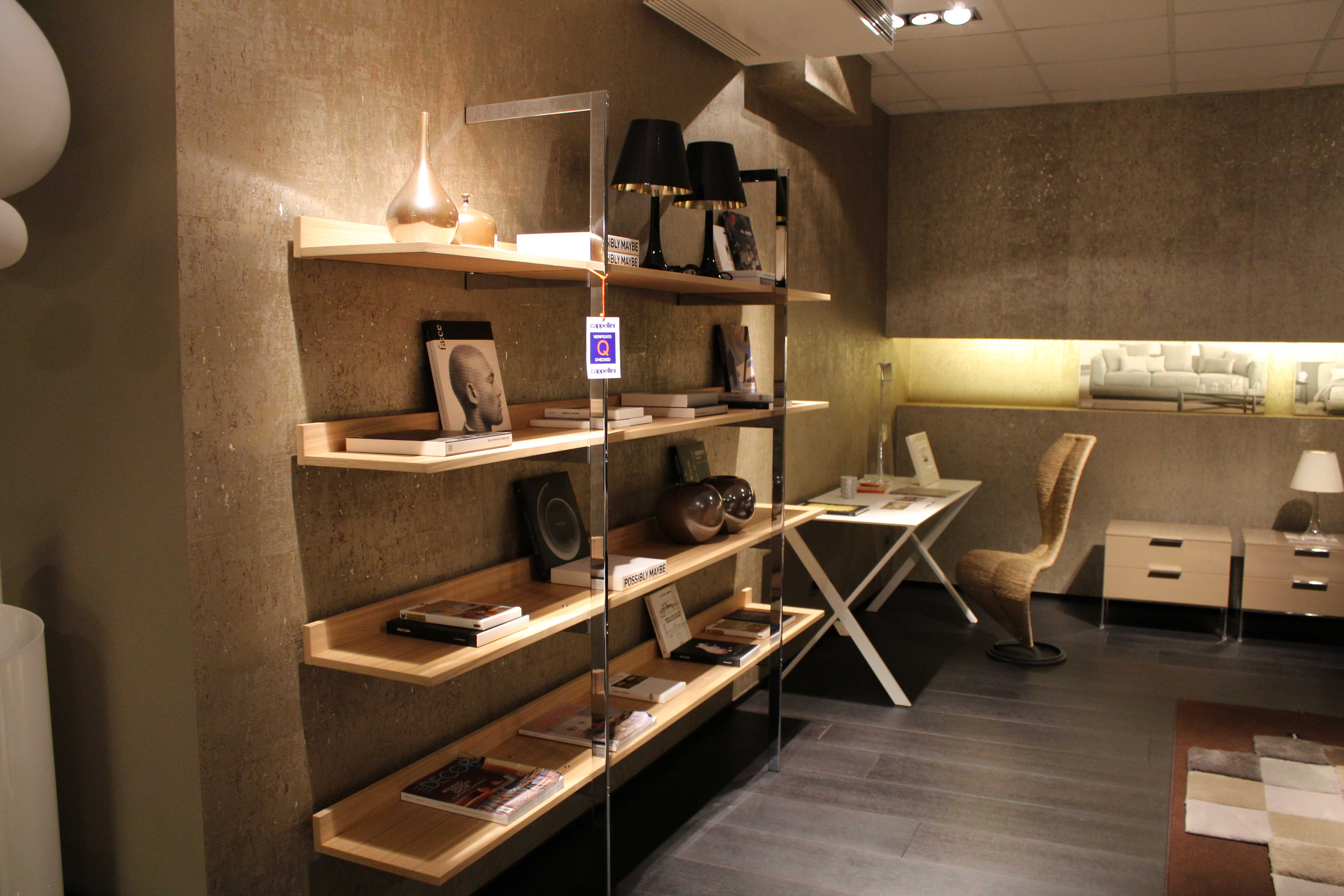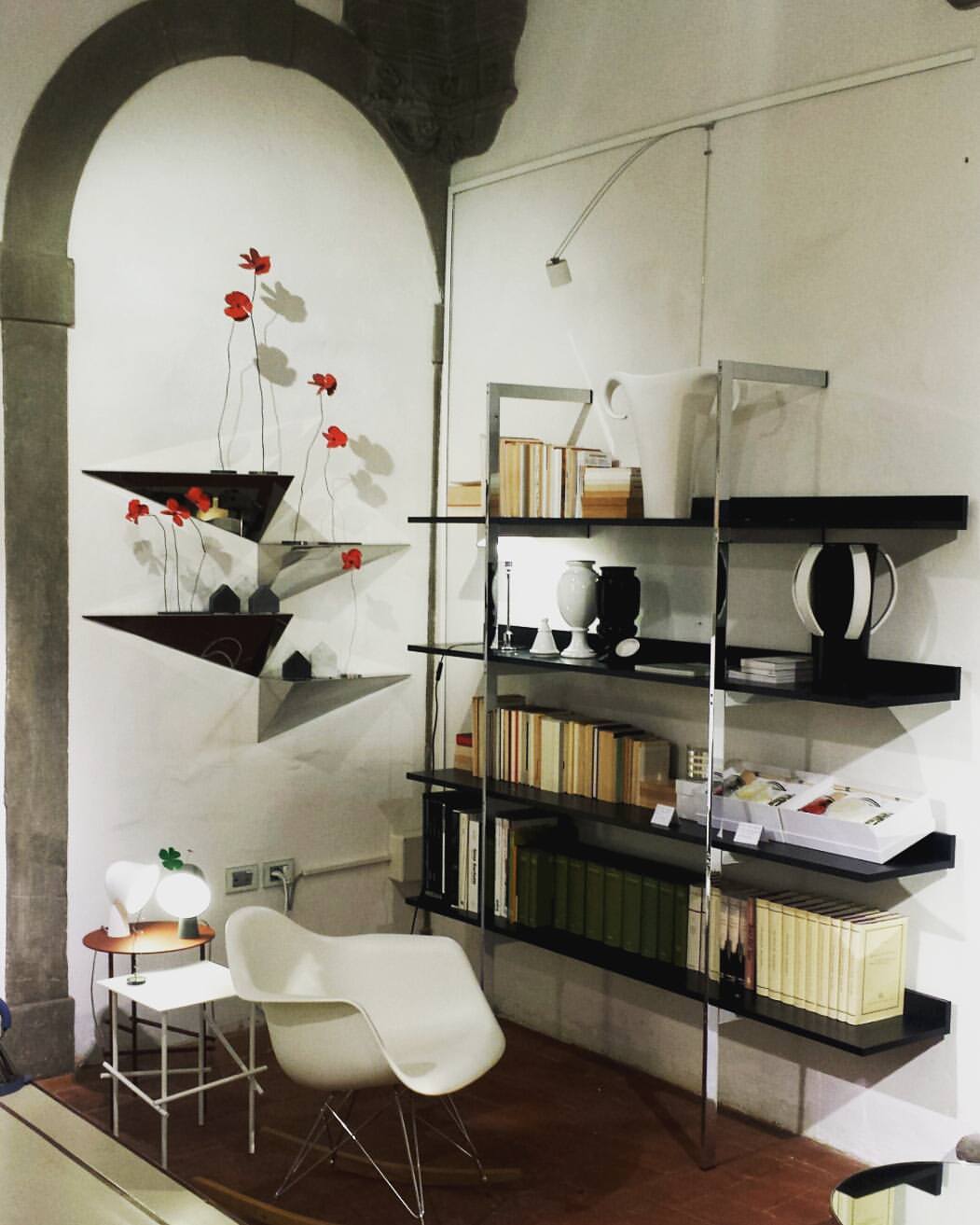 带金属框架和木制书架的系列壁式书柜。框架由抛光镀铬金属制成的两个簧片组成。架子可以是哑光或抛光漆器的所有颜色的集合:自然或温格染色橡木。书架也可以有不同颜色的书架。书架通过内六角螺钉固定在结构上,书架通过一个膨胀钩固定在墙上。