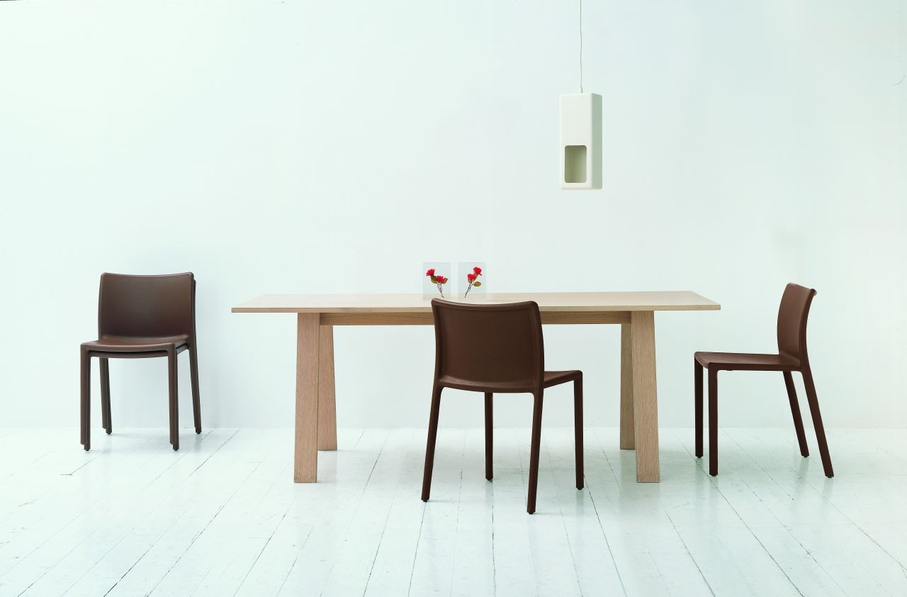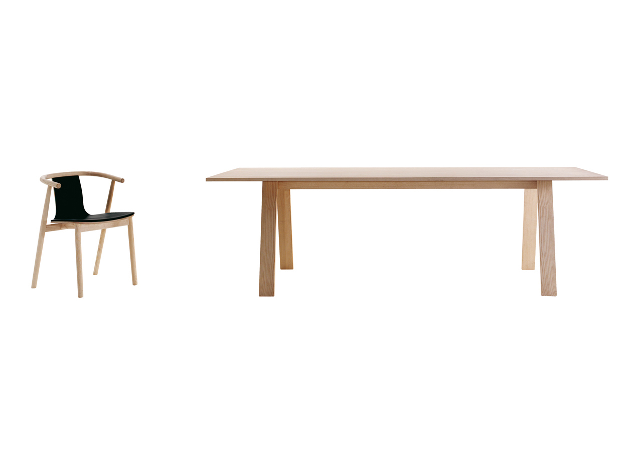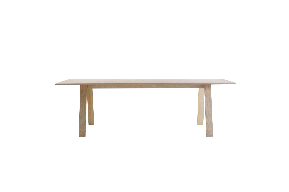 Bac桌由Jasper Morrison设计,由实木灰制成,表面经过漂白、翁染色、胡桃染色或上海蓝处理,或采用开孔漆灰(颜色:云、泥、木兰、橙色、灰绿色或中国蓝)。