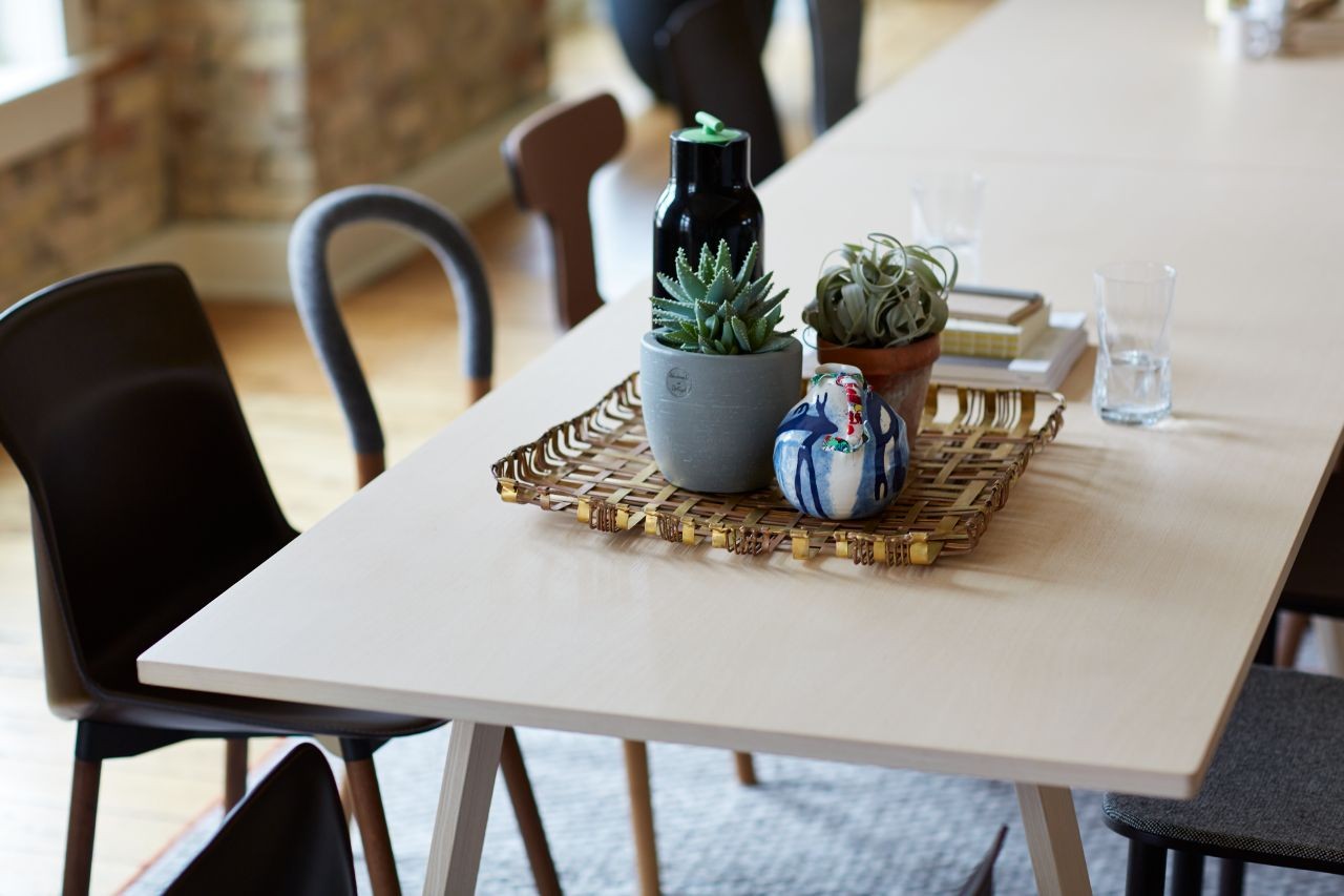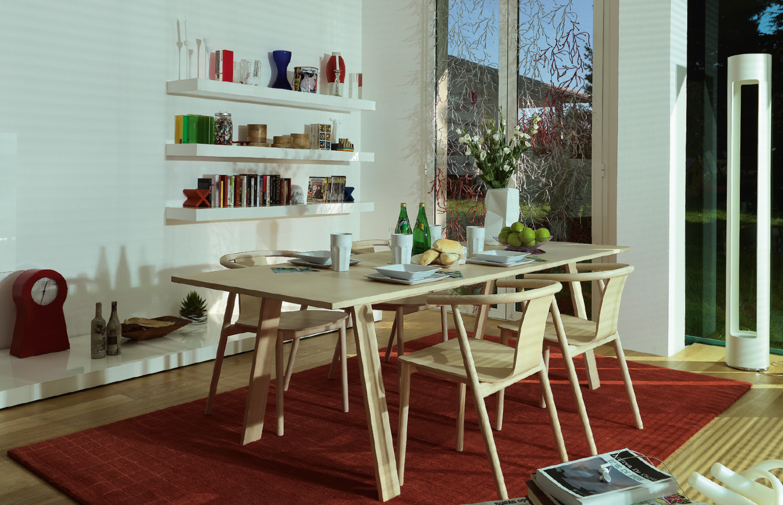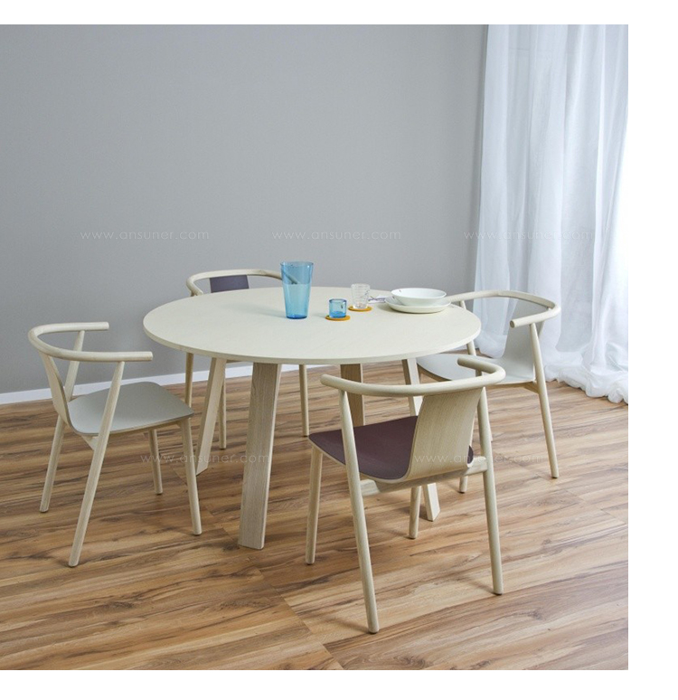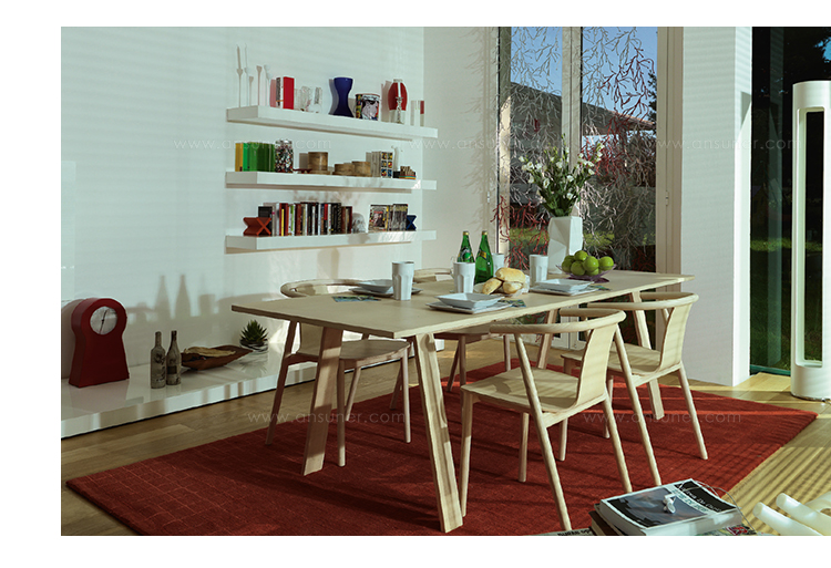 Bac桌由Jasper Morrison设计,由实木灰制成,表面经过漂白、翁染色、胡桃染色或上海蓝处理,或采用开孔漆灰(颜色:云、泥、木兰、橙色、灰绿色或中国蓝)。