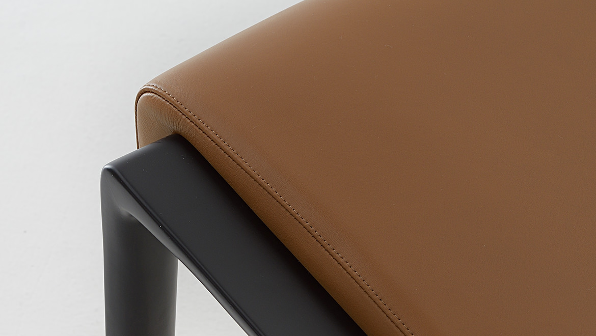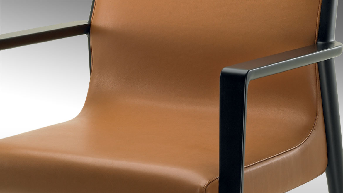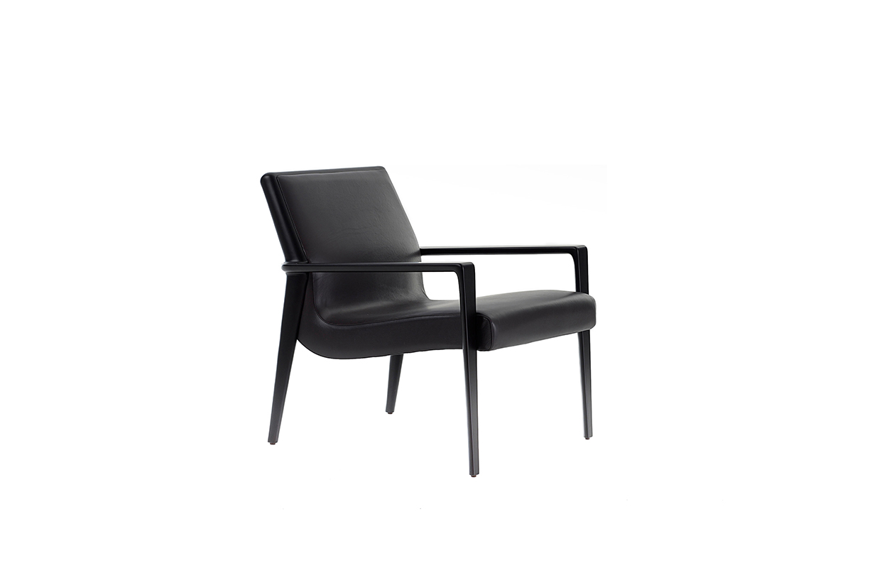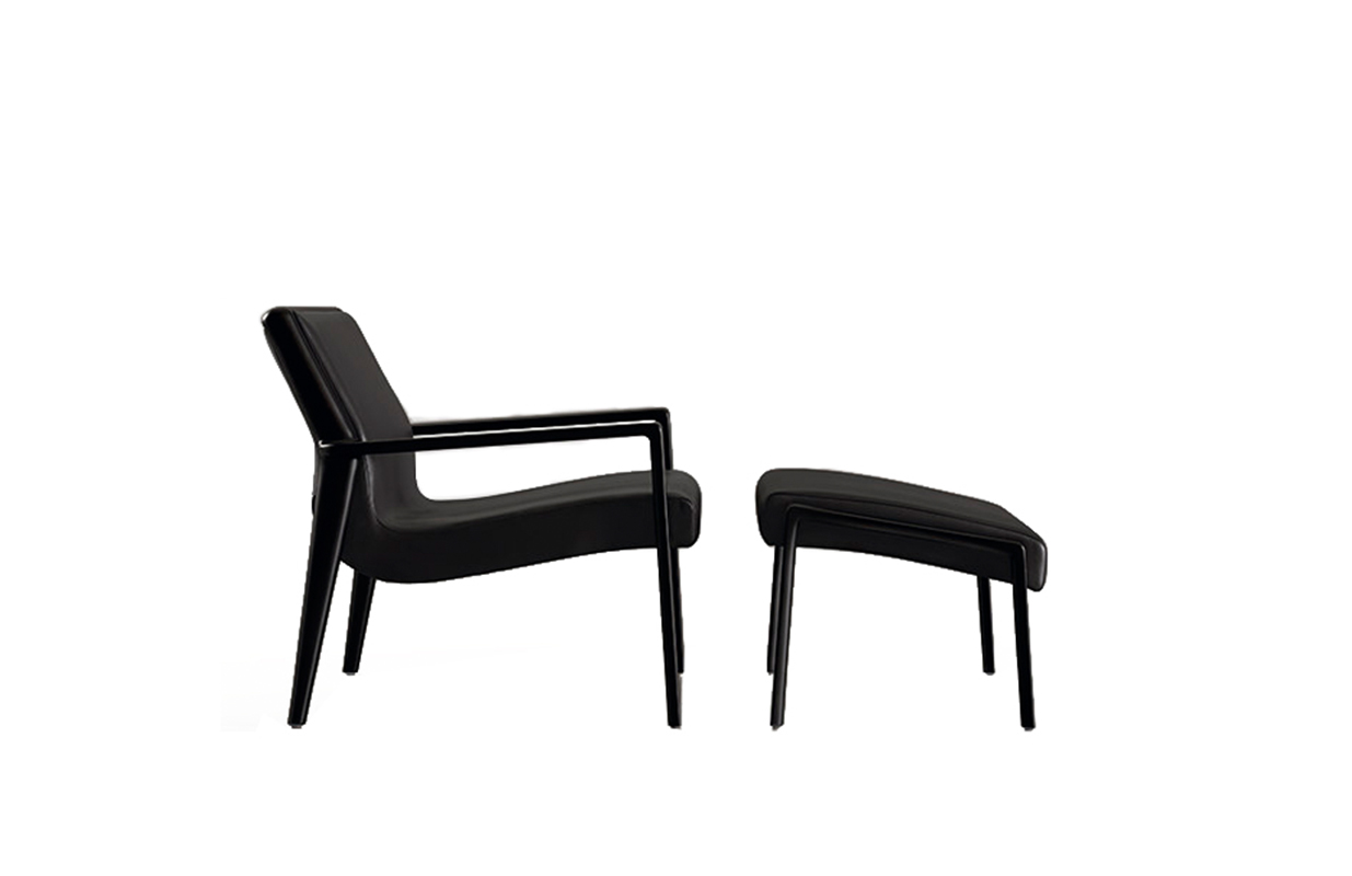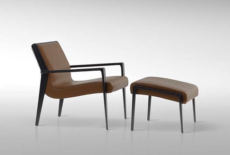 The Nairobi armchair Lounge version has a solid-wood structure stained dark brown and has been reinterpreted in traditional, harmonious and fluid cabinet-maker style without any interruptions in shape.