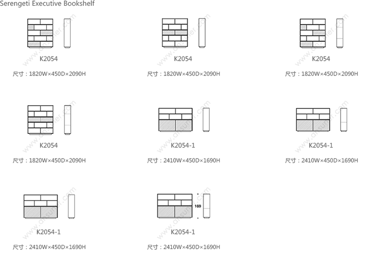 Serengeti Executive Bookshelf 系列尺寸/示意图