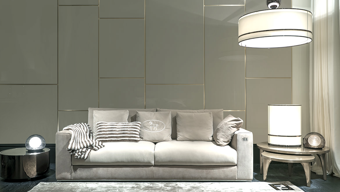 Parchment ivory colour glossy finishing or Emperador Dark marble, wooden feet covered in Allia leather