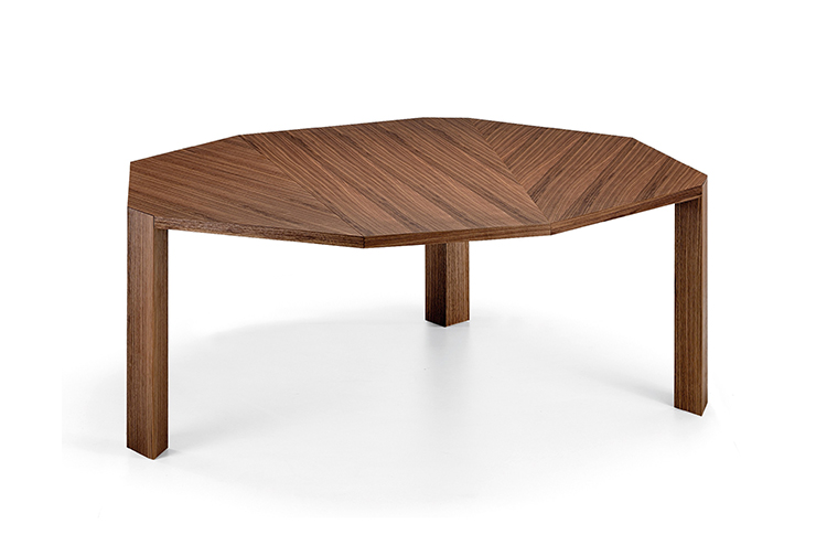 这张餐桌因其独特的八角形当代设计和个性而引人注目。ig XXL是独一无二的,因为它只有三条腿。具有多面的镶嵌面的桌面允许它在房间不同的位置上进行陈列,或一面靠在墙壁,或放在客厅里。它是由MDF镶嵌在卡纳莱托胡桃木、橡木或苏皮亚木中制成的。