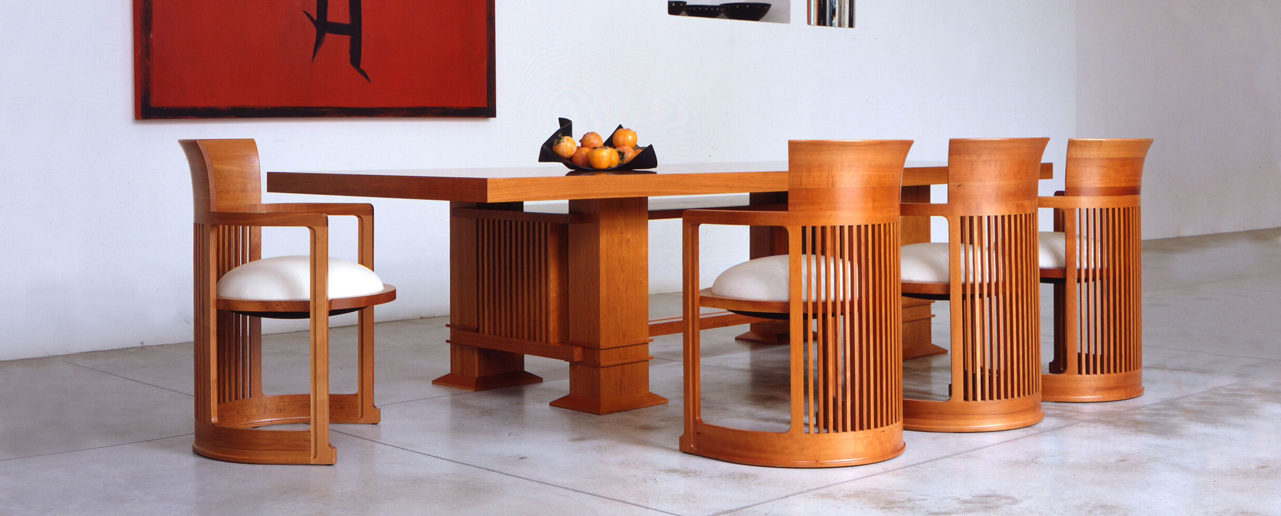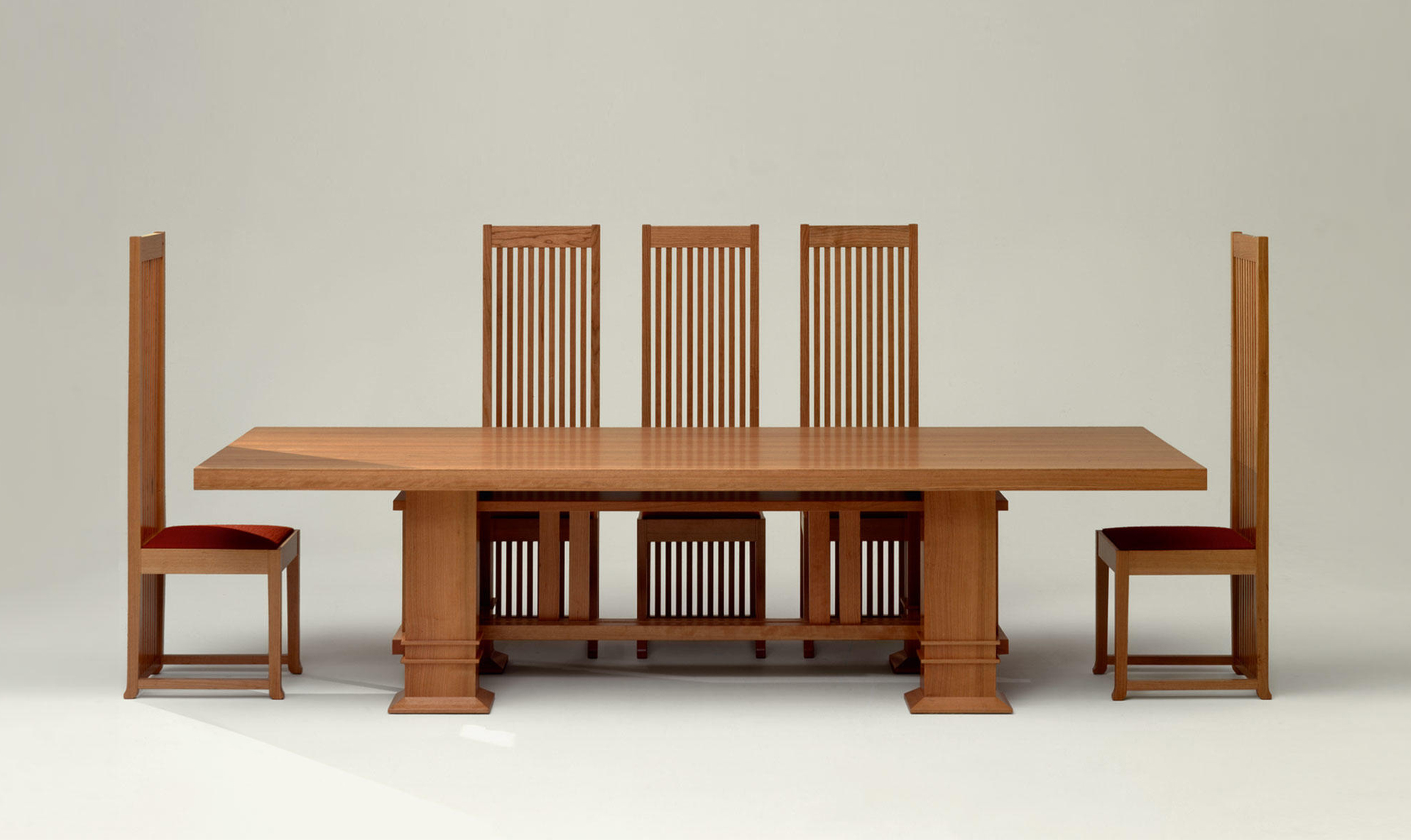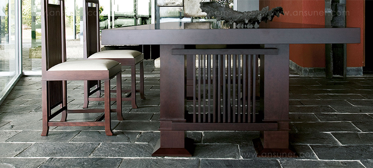 长方桌,采用天然樱桃木或樱桃木色的胡桃木制造。桌面拥有两种不同尺寸可供选择。