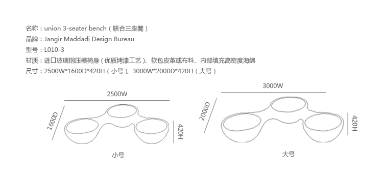 瑞典设计师Jangir Maddadi设计的这款联合座凳系列,可分为双座,三座及多坐,我司主要推出两座及三座,分别为:Union 2-seater Bench(联合双座凳)和Union 3-seater Bench(联合三座凳)。大家都知道,一般的座椅都是可以一个人或多个人一起坐,相互之间都不会受到影响。而这款连体休闲座椅却不同,外形很像一只陀螺,使用起来很像一个不倒翁,上面最多可以坐四个人。但是设计师并没有将这样的座椅让它们独立出现,而是用三张同样的座椅链接在一起,并且形成一个90度的直角,这样无论是陀螺还是不倒翁,都会很稳定的供给我们使用。当然,理论上来说,生产这种椅子,不仅可以做3件连体,4个,6个……都可以做。只是要考虑运输问题,或许3个是最完美的。这款连体休闲座椅不仅外形很优秀,而且还更加实用,使坐在上面的人有更多的空间,而且还可以保持面对面的互动。