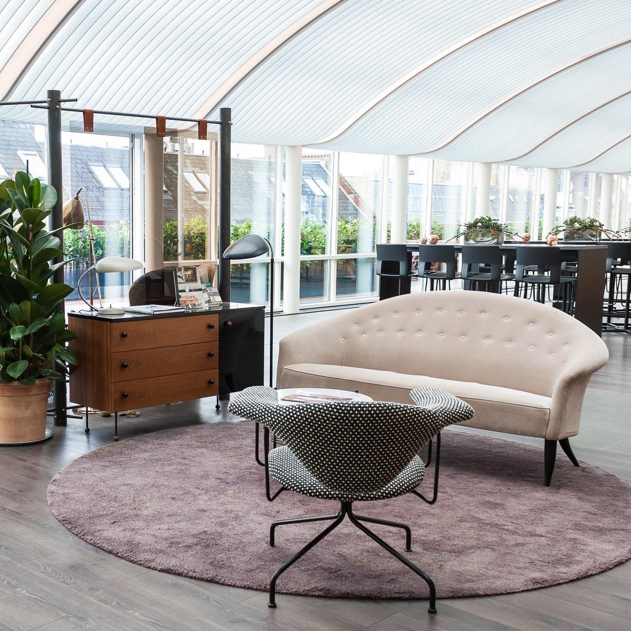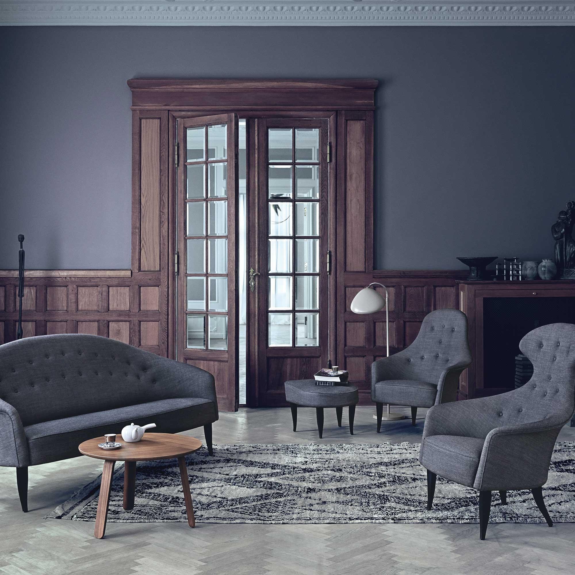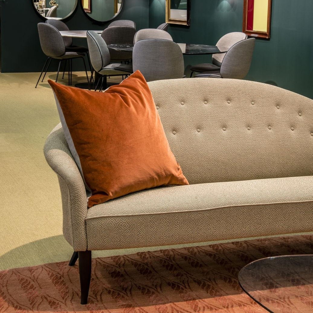 1958年,Kerstin H. Holmquist为NK Nordiska Kompaniet设计的天堂沙发,提升了优雅和有机的形状——这是瑞典现代设计的一大特色。柔软的背部线条,平滑地延伸到扶手,给人一种古典的吸引力,锥形的和弯曲的腿给2.5座的沙发设计带来了一种异想天开的扭曲。