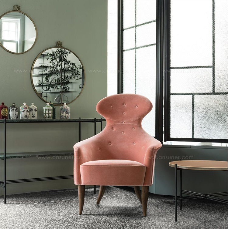 伊娃沙发椅设计独特,大胆,有曲线和签名头枕,让任何房间,包括客厅和家庭办公室,现代别致。这种非常规的椅子有一个宽大的座垫和扶手,在向内逐渐变细形成头枕之前,扶手向上弯曲成背部支撑。具有耐用的木材,聚氨酯泡沫和织物结构,椅子提供了几个小时的舒适坐,并易于保持清洁。