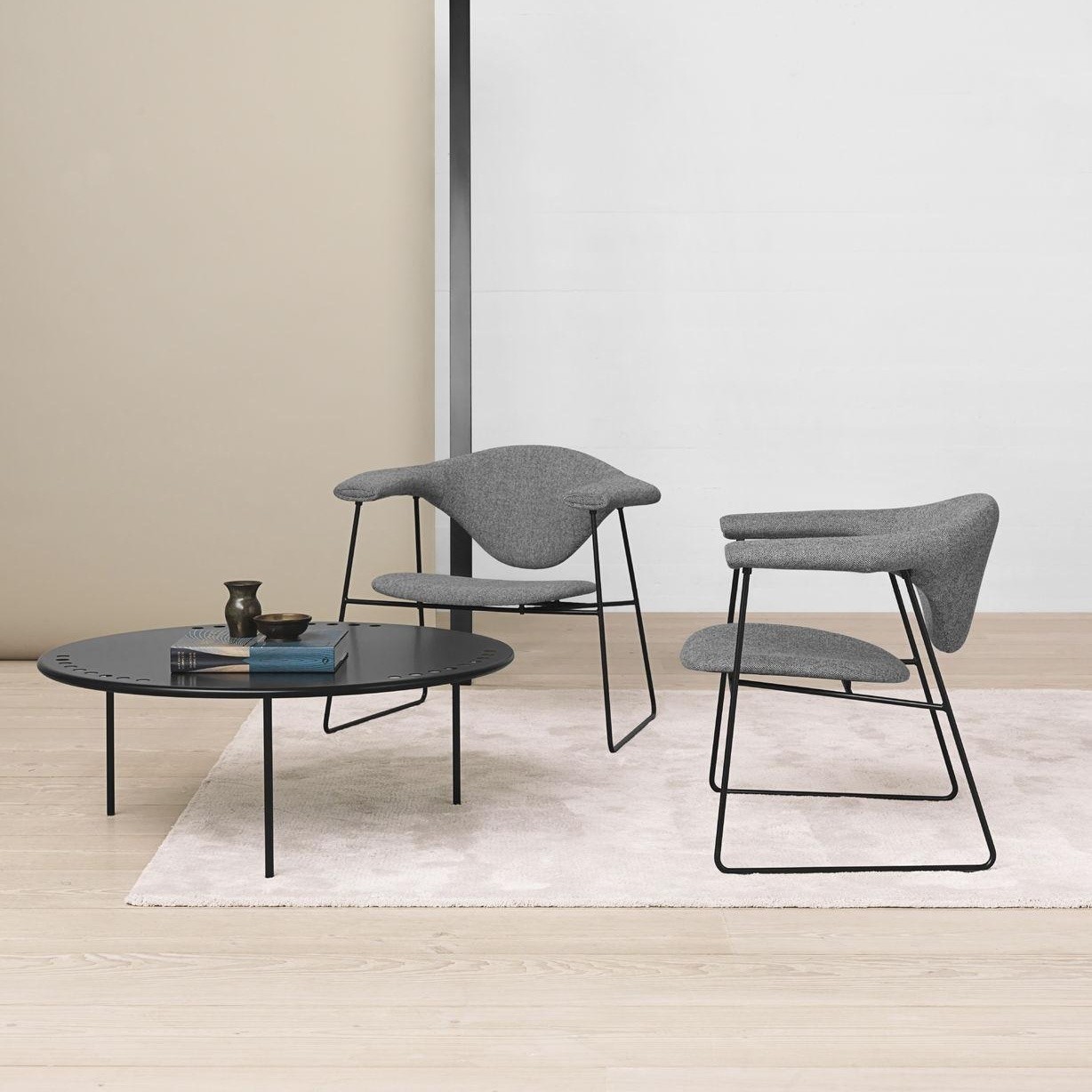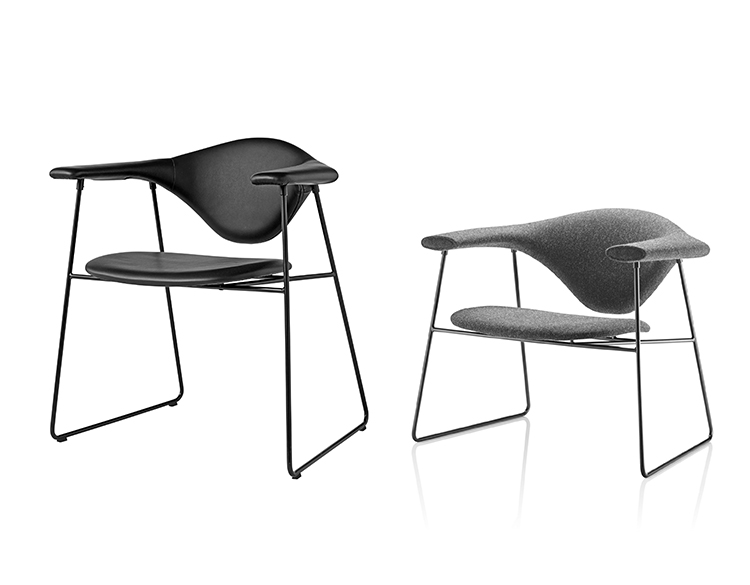 通过GamFratesi的Masculo系列,我们看到了Gubi推出的全新潜在经典家具系列。 Masculo雪橇基座椅采用粉末涂层黑色或铬钢杆结构。 座椅和靠背可以选择布料或皮革装饰。 包括塑料滑动,可根据要求提供毛毡滑动。 还提供不同的基本选择以及休息室版本。