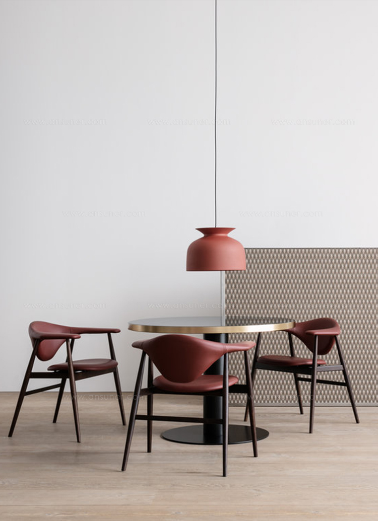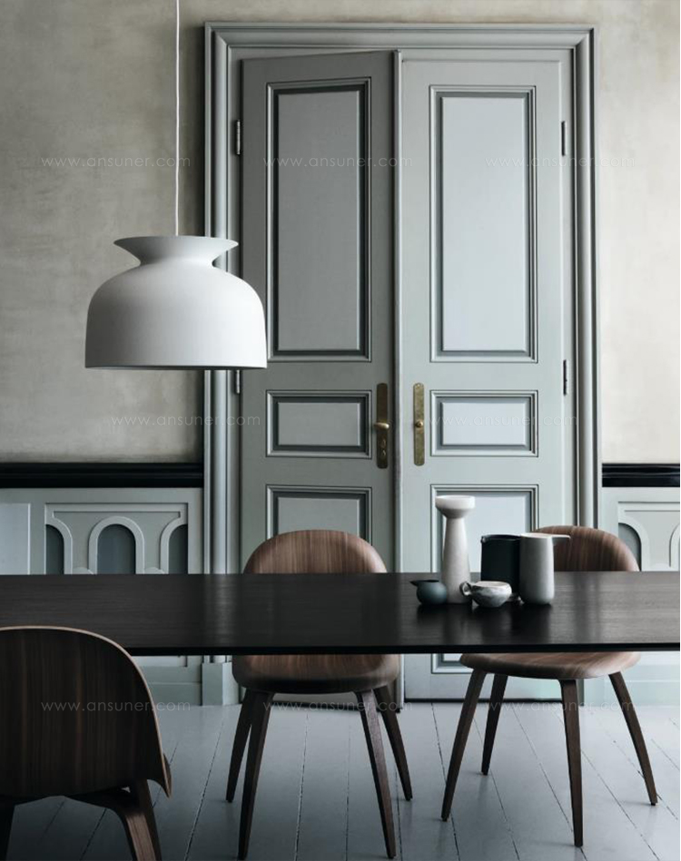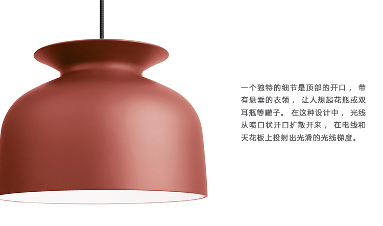 Ronde吊灯是Oliver Schick为Gubi设计的第一款产品,于2013年设计。钟形件参考了传统的吊灯和20世纪70年代闪电设计的全盛时期。 然而,在一个现代的解释。 一个独特的细节是顶部的开口,带有悬垂的衣领,让人想起花瓶或双耳瓶等罐子。 在这种设计中,光线从喷口状开口扩散开来,在电线和天花板上投射出光滑的光线梯度。